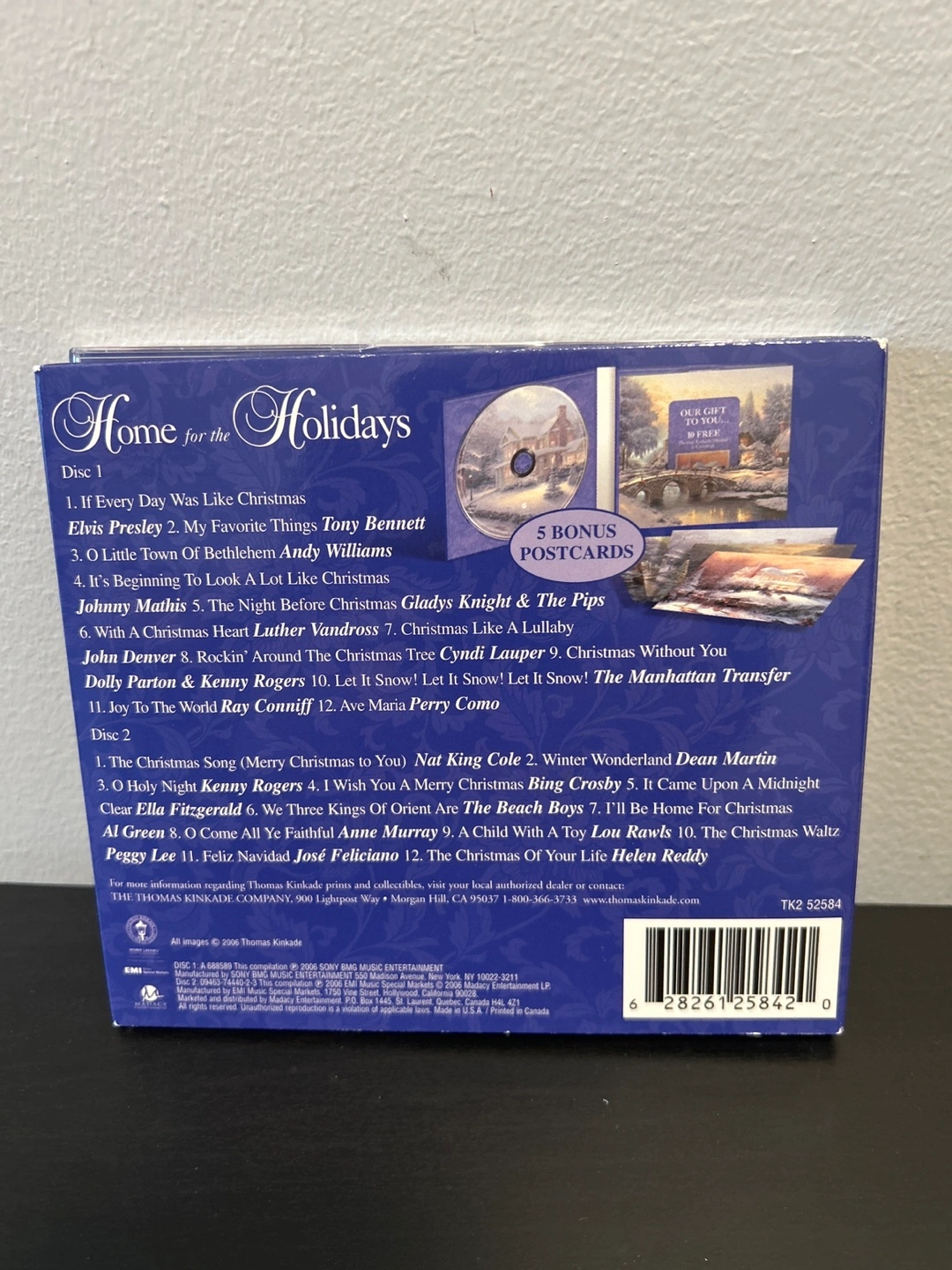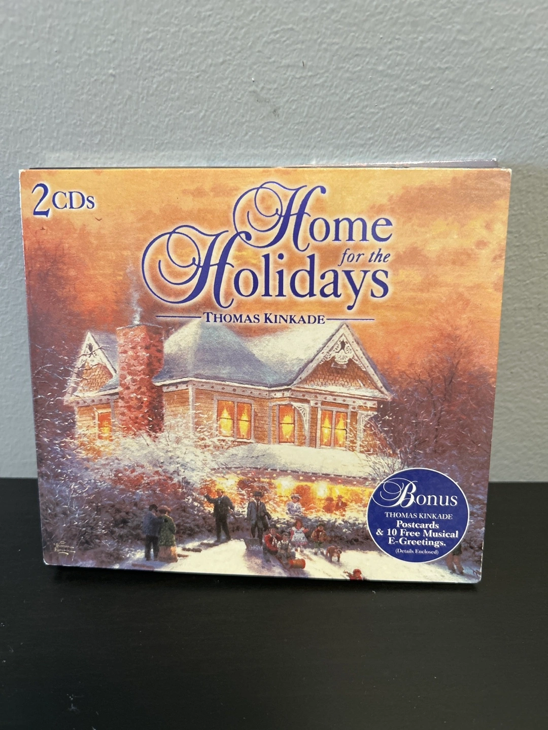 Selling a Thomas Kinkade "Home for the Holidays" 2CD set! It includes two CDs filled with classic Christmas tunes and comes with 5 bonus postcards. A perfect addition to your holiday collection!