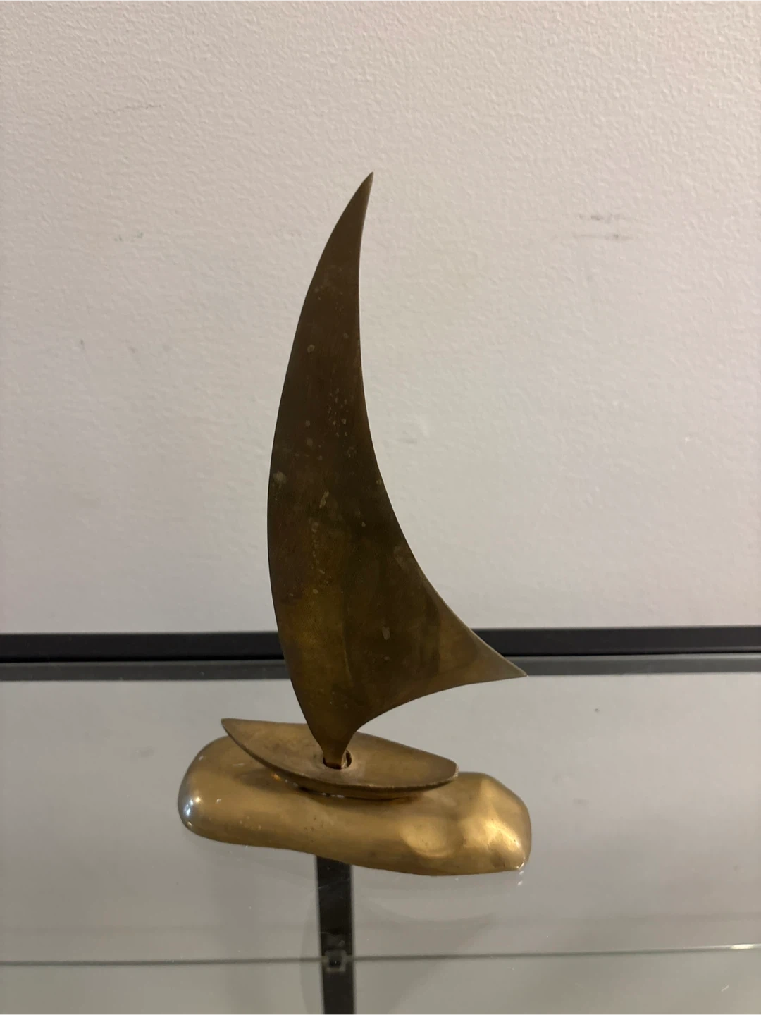 A lovely brass sailboat figurine! It would be a great addition to any nautical-themed decor or as a standalone piece