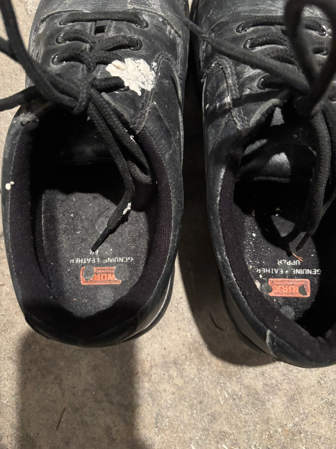 Selling a pair of Worx slip-resistant work shoes. They are size 11W (US). They have a genuine leather upper. Please see the pictures for condition.