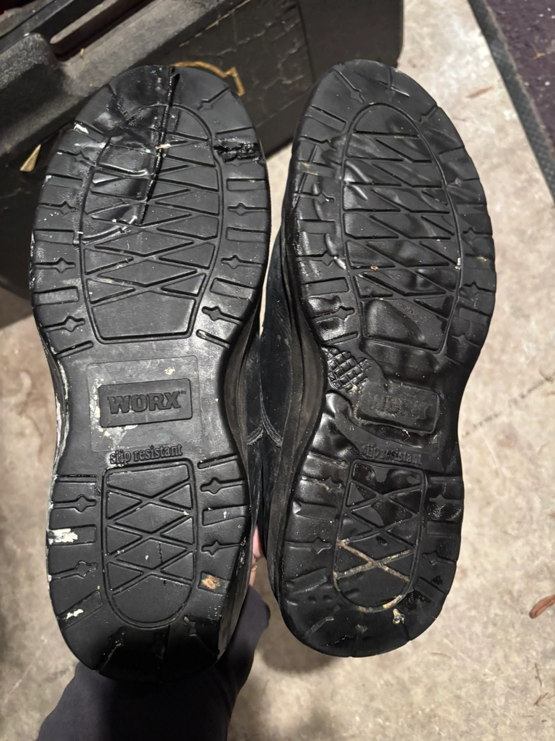 Selling a pair of Worx slip-resistant work shoes. They are size 11W (US). They have a genuine leather upper. Please see the pictures for condition.