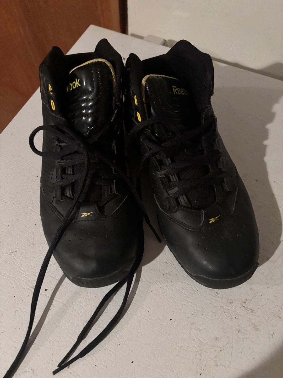 Selling a pair of Reebok basketball shoes in black. They show some signs of wear, but still have lots of life left! Youth size