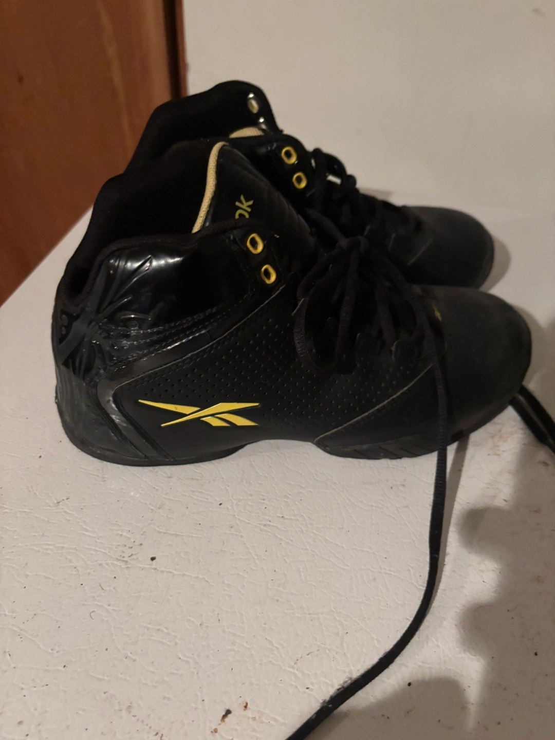Selling a pair of Reebok basketball shoes in black. They show some signs of wear, but still have lots of life left! Youth size