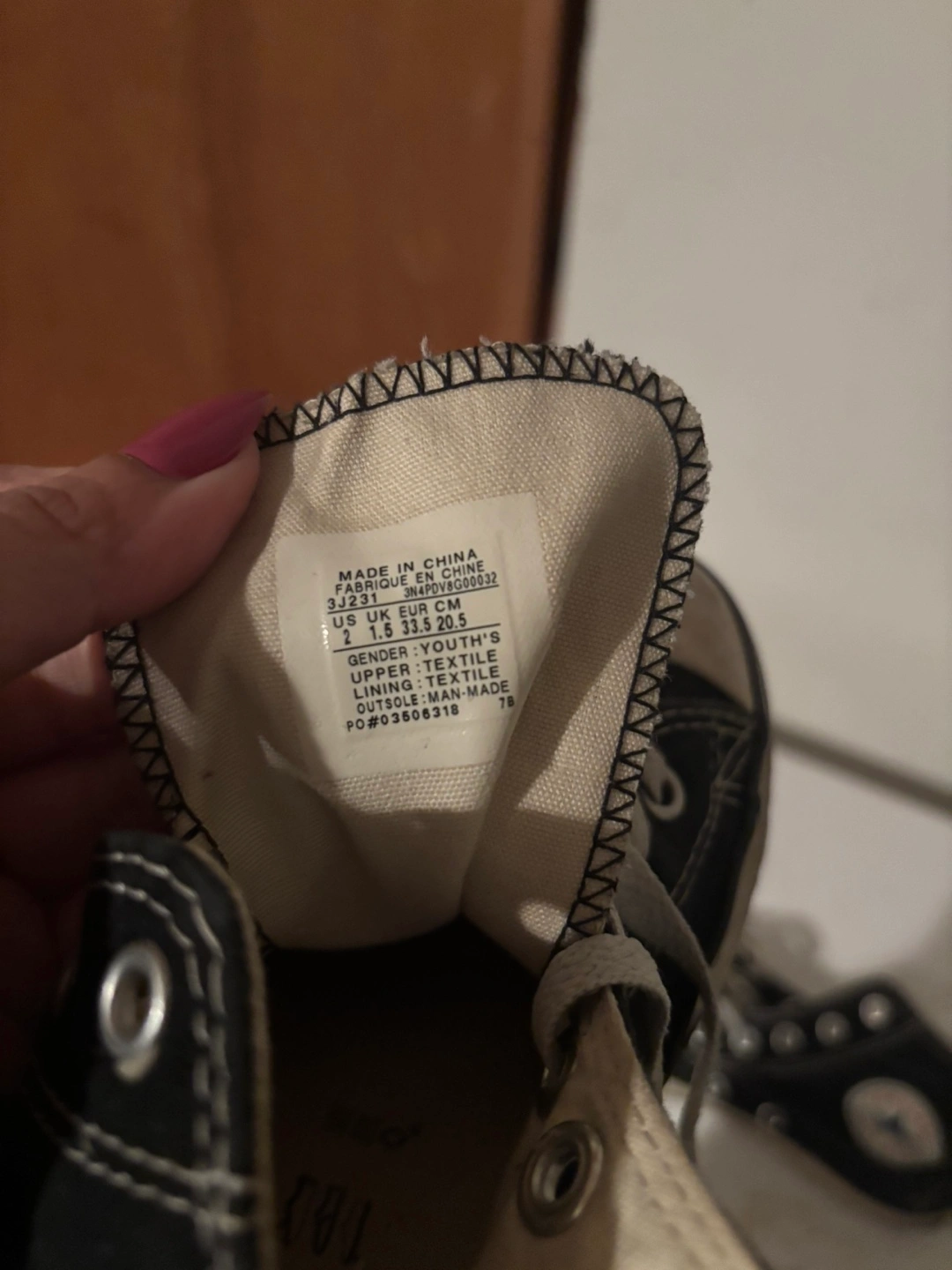 Selling a pair of Converse All Star high tops in youth size 2. They're black and have some wear, as you can see in the photos. Still lots of life left in them!