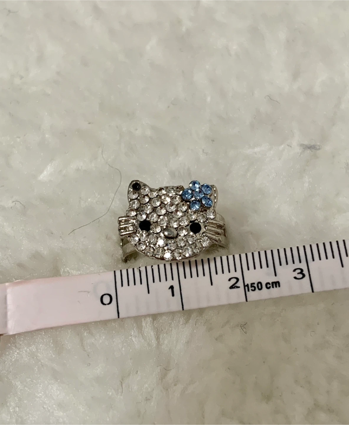 Super cute Hello Kitty ring! It's silver in colour and features lots of sparkly rhinestones. Perfect for any Hello Kitty fan.