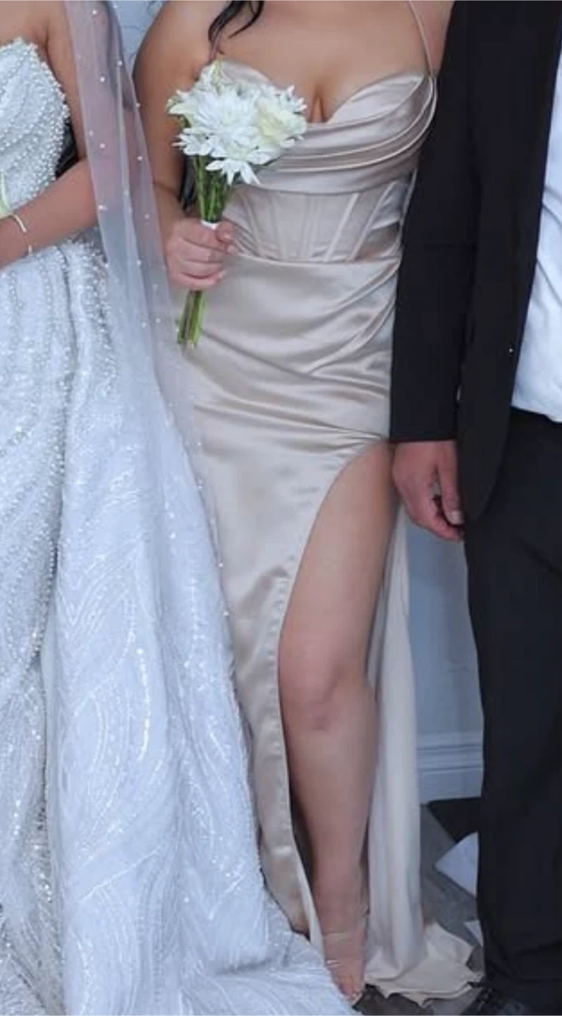 beige corset dress and the other corset dress selling each for 50
