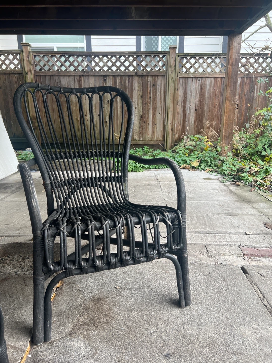 Selling two black rattan armchair. It's in great condition and would look lovely on a patio or in a sunroom! It's a stylish and comfortable chair that will add a touch of elegance to any space