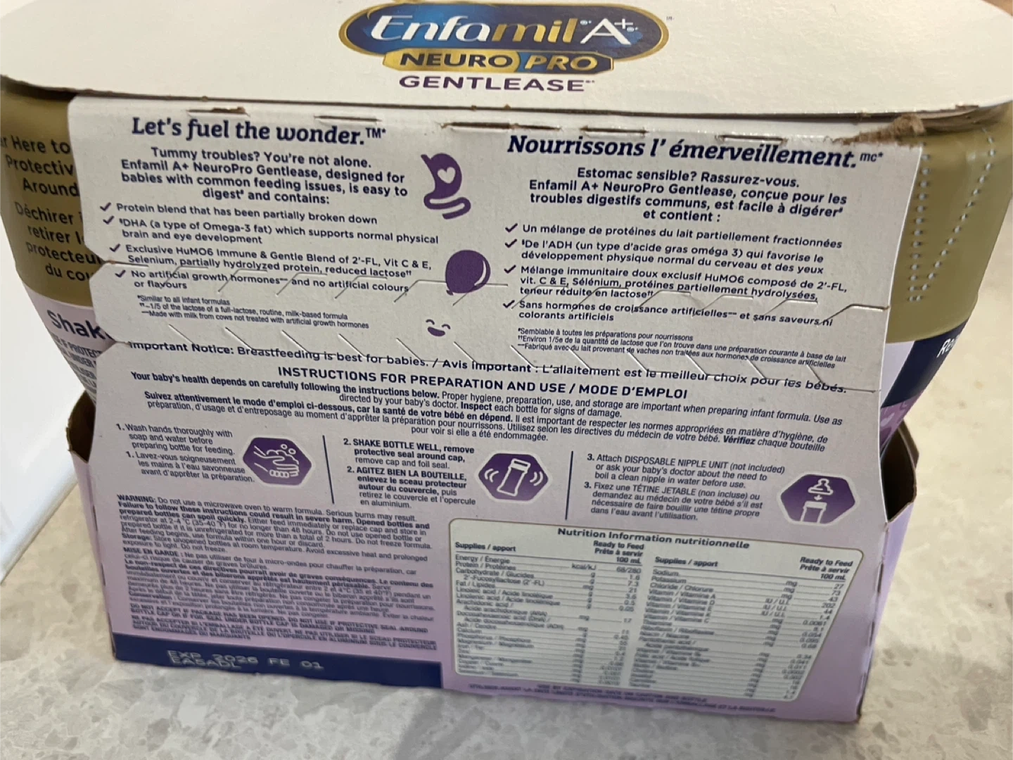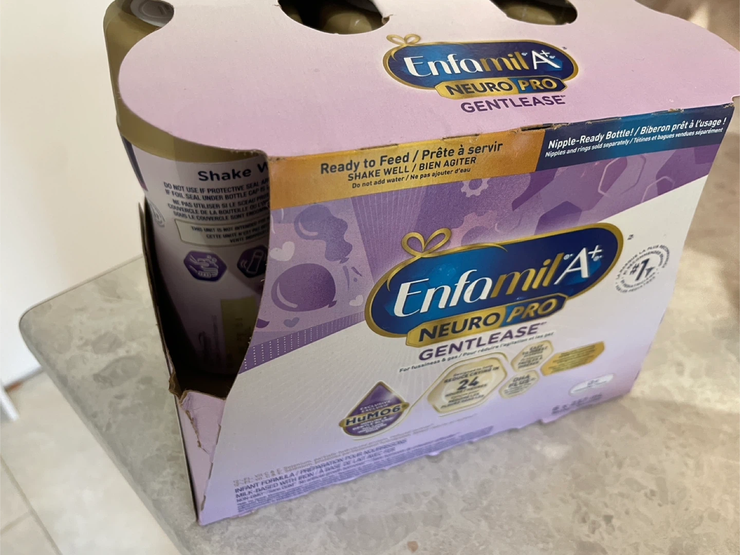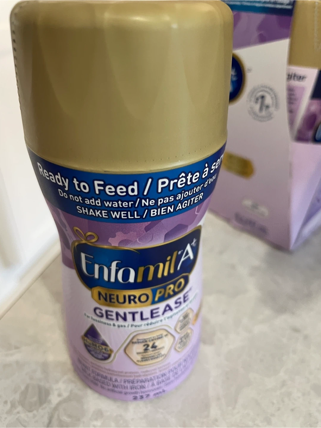 Selling a pack of Enfamil A+ NeuroPro Gentlease ready-to-feed bottles. These are great for babies with sensitive tummies and are designed for easy digestion. They contain a protein blend that supports physical growth and eye development, as well as an exclusive blend that promotes immune health. Expiry Date: 2026 February 01