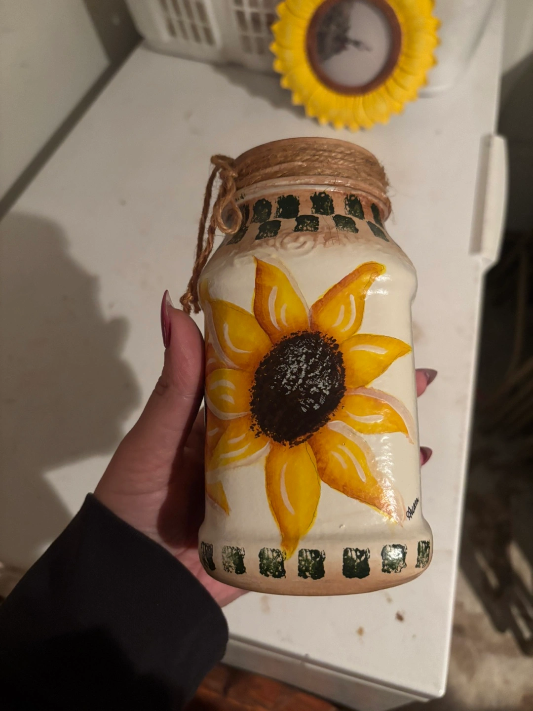 Buy & SellSunflower Painted JarSunflower Painted Jar$5Cute sunflower painted jar with a twine detail. Perfect for adding a touch of sunshine to any room!ConditionLike newWHERE TO MEETCheck LocationView MapSELLERNatalieFleetwood385 reviews0 chats·0 favorites·7 viewsSEND CHAT TO SELLERHi Natalie! I’m interested in your listing.Hi Natalie! I’m interested in your listing.Get the Karrot app to chatSign In to chat