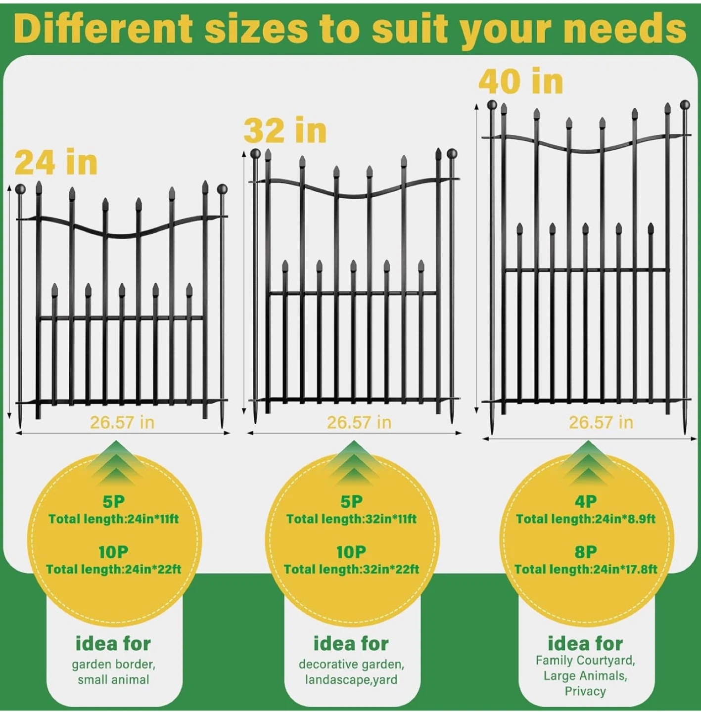 10 Panels No Dig Decorative Garden Fence, 32in(H)×22ft(L) Heavy-Duty Rustproof Metal Panels, Outdoor Dog Barrier for Yard & Patio, Landscape, Border| Portable Temporary fencing