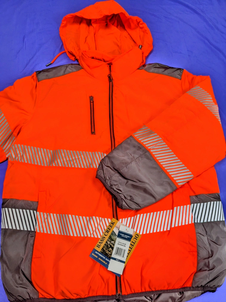 New, sealed pack * Bass Creek Outfitters Men's Hi Visibility Jacket - ANSI Class 3 Safety / Rain Waterproof Reflective Workwear ... SIZE L & XL Available