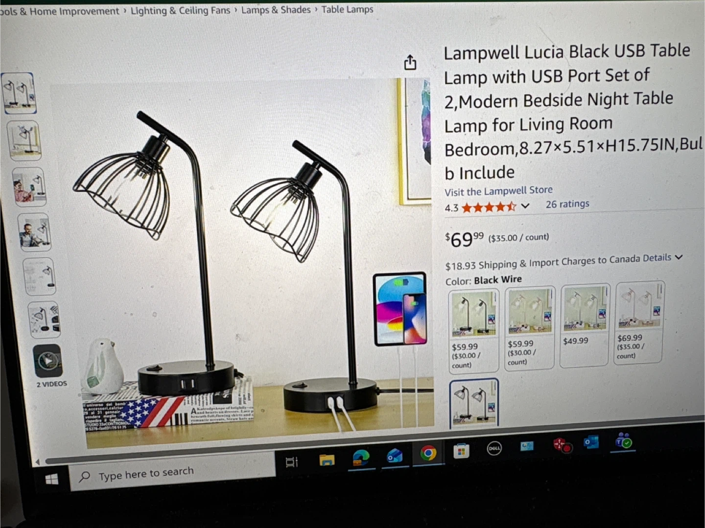 Selling a Lampwell Lucia black USB table lamp with a USB port set of 2. It's a modern bedside night table lamp for your living room or bedroom. The dimensions are 8.27 x 5.51 x H15.75 inches. Includes the box