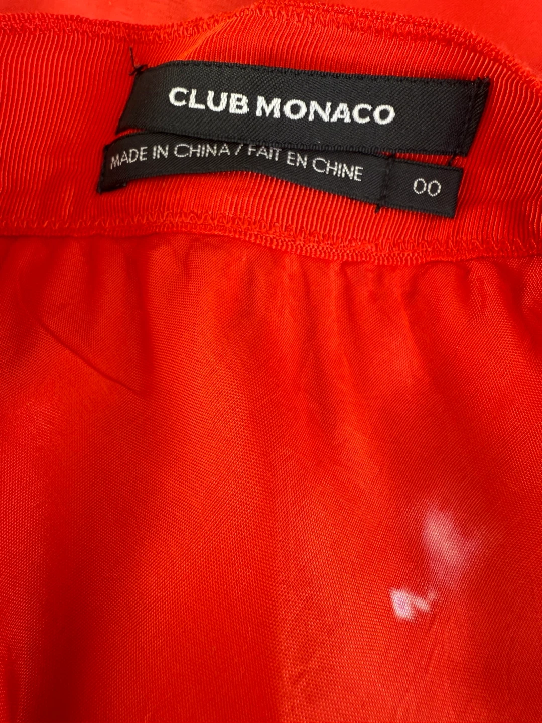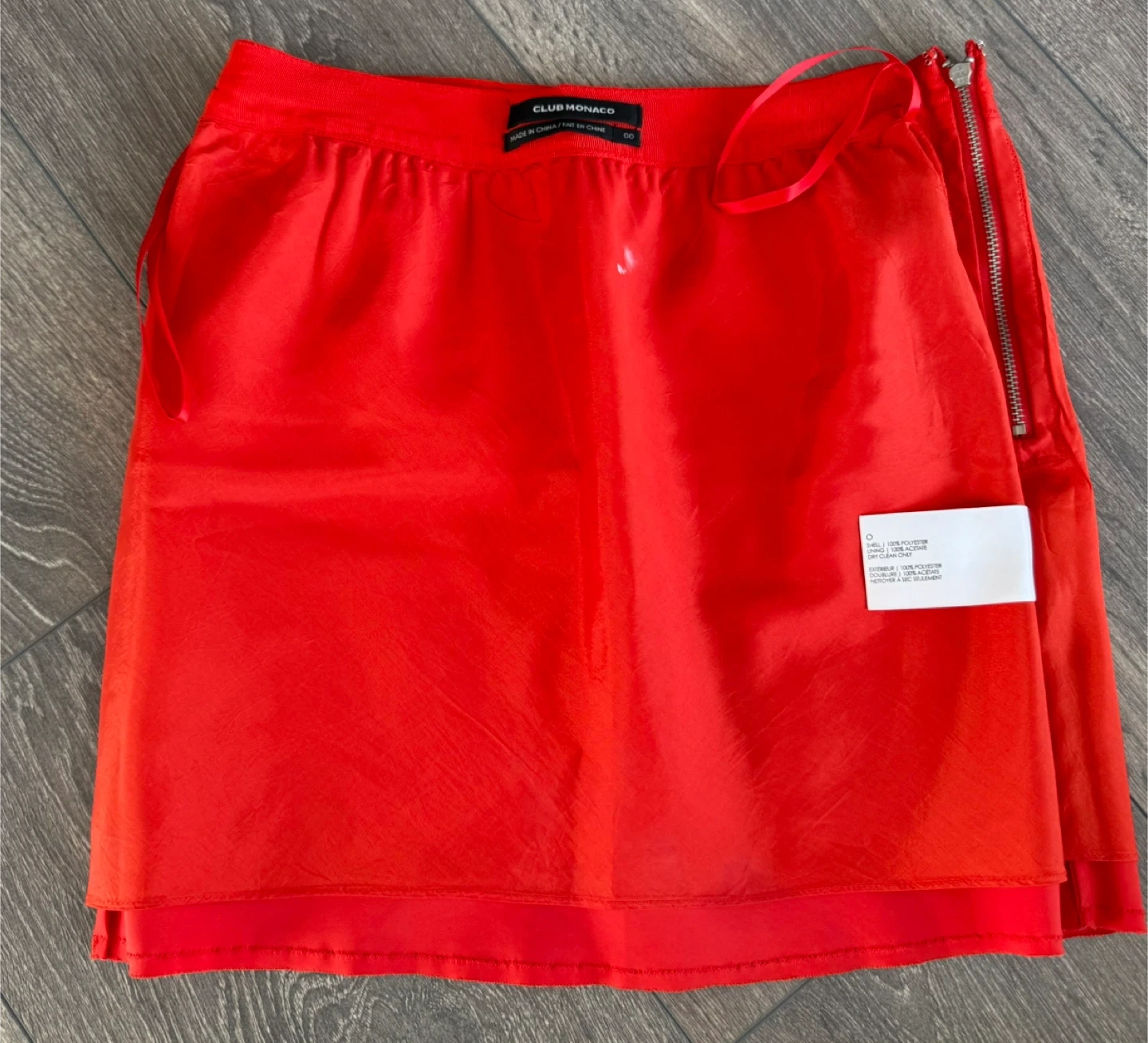 Selling a cute red mini skirt from Club Monaco! It's a size 00 and made with 100% polyester shell and 100% acetate lining. Perfect for adding a pop of colour to your wardrobe!
