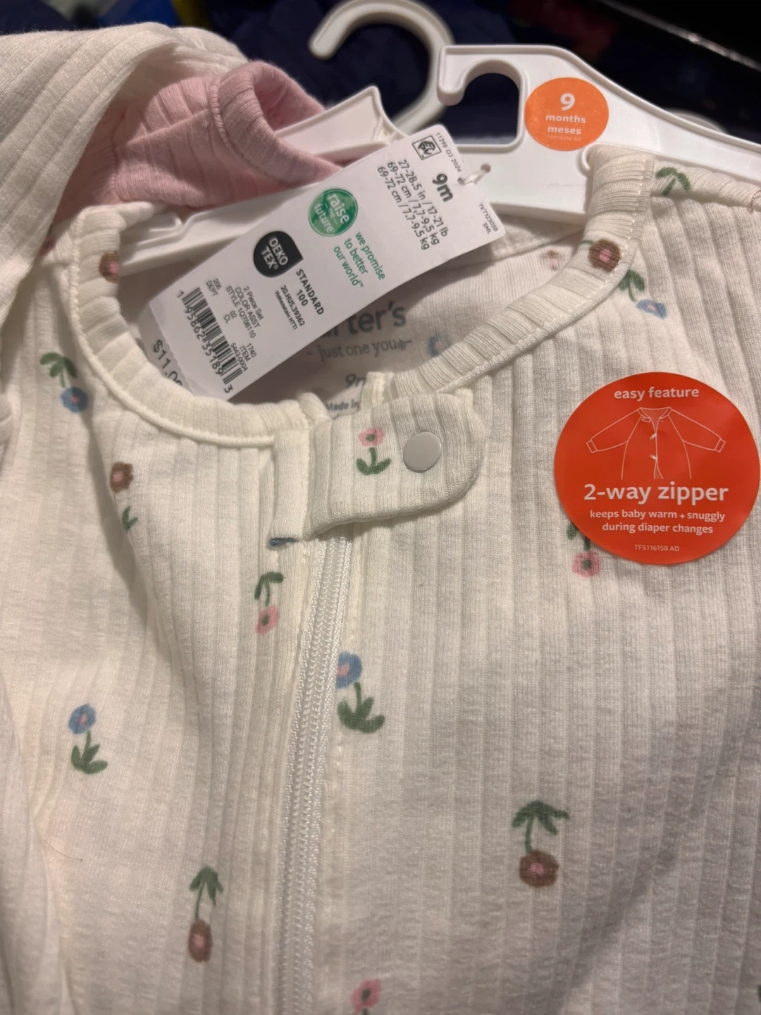 I have a lot of baby sleepers for sale, perfect for your little one! Includes Carter's and Chick Pea brands. All are size 9 months. They feature cute designs and are in great condition, ready for a new home!
