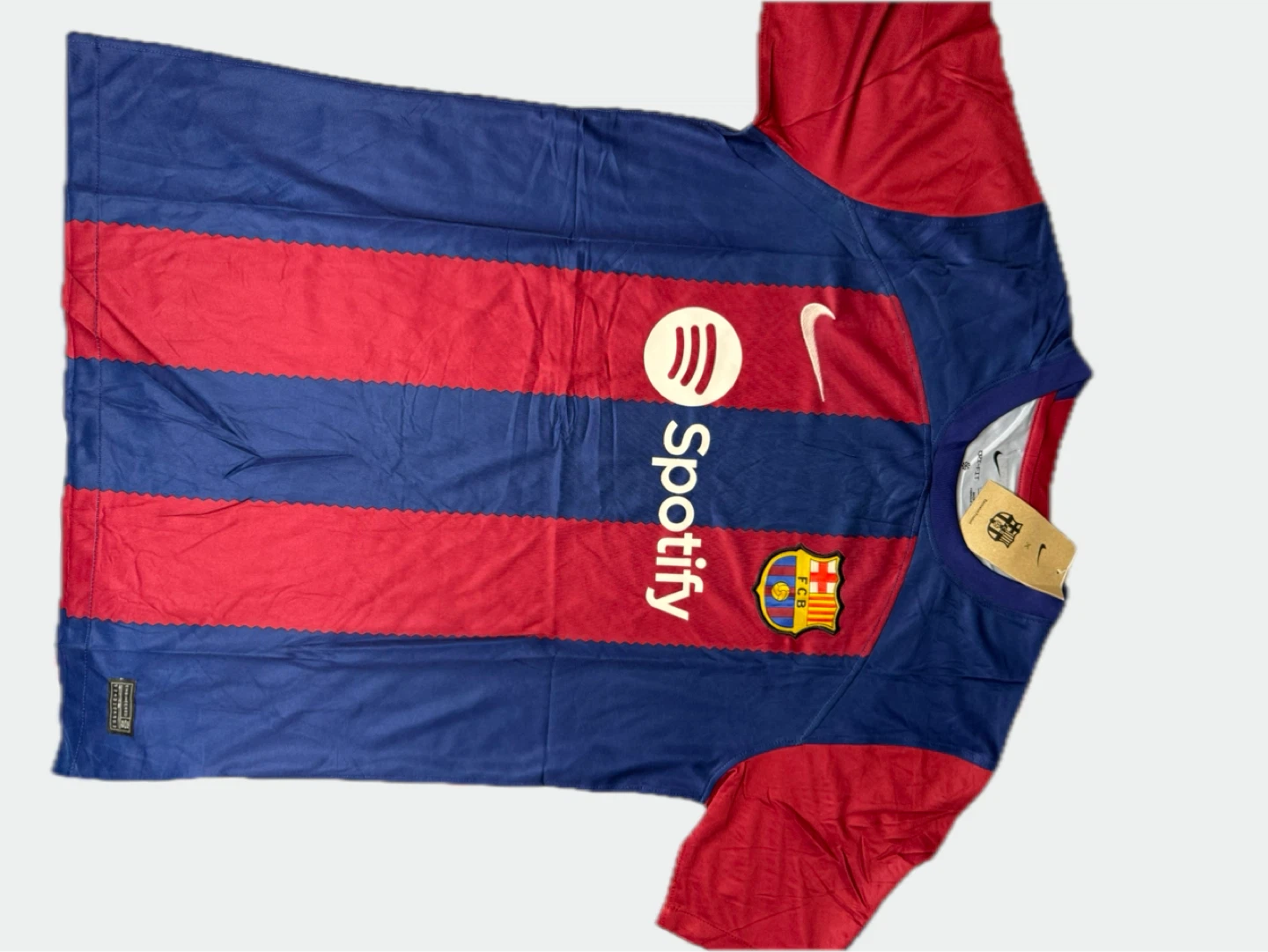 Selling a FC Barcelona 2022/23 home jersey. I Dri-FIT shirt, featuring the Spotify logo and the UNHCR ACNUR logo. Perfect for any Barca fan!version fan.buena calidad y comfortable.