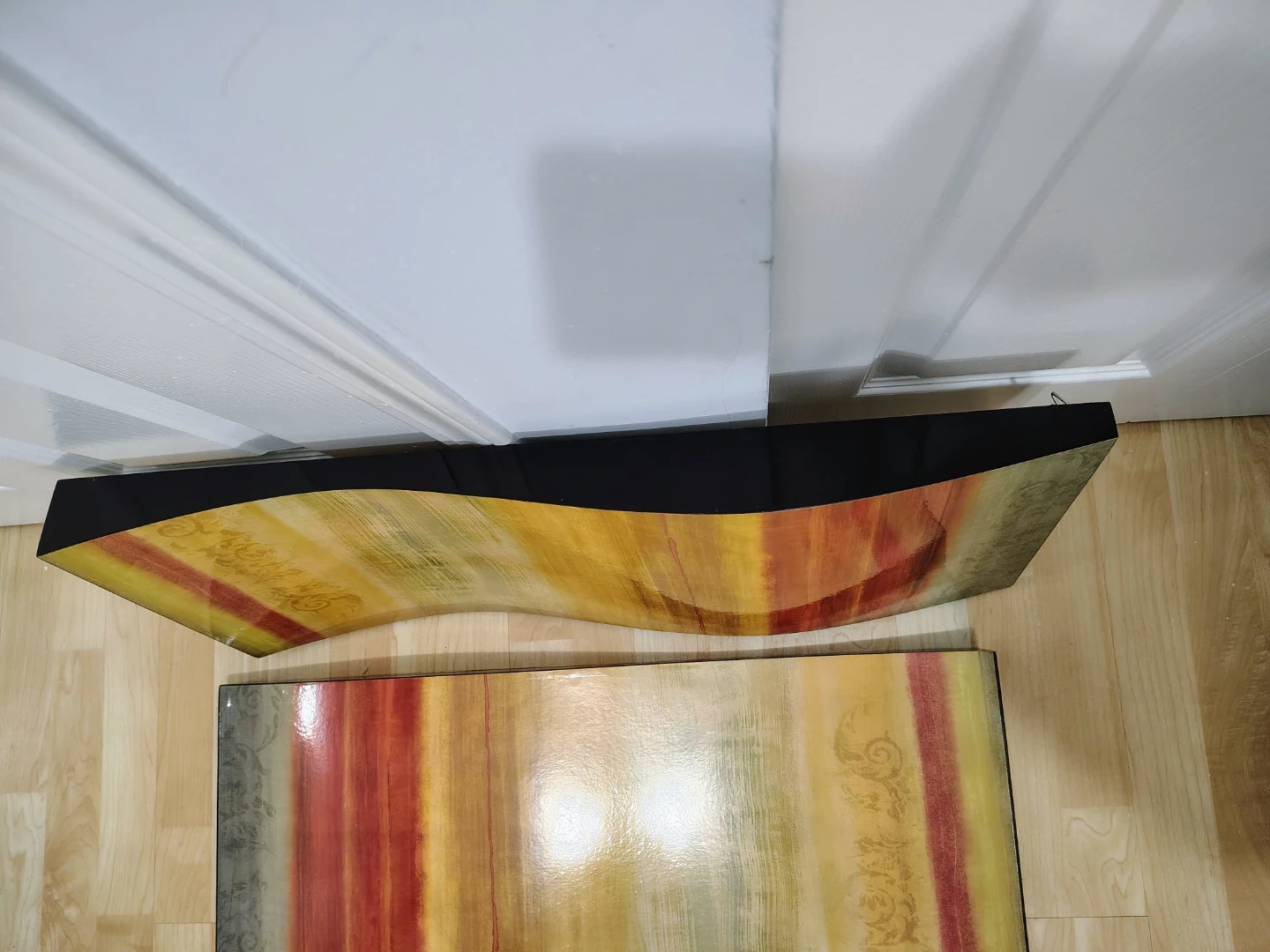 Selling a set of three wall art panels. They feature a unique striped pattern with various colours and a subtle floral design. These panels would add a nice touch to any room!