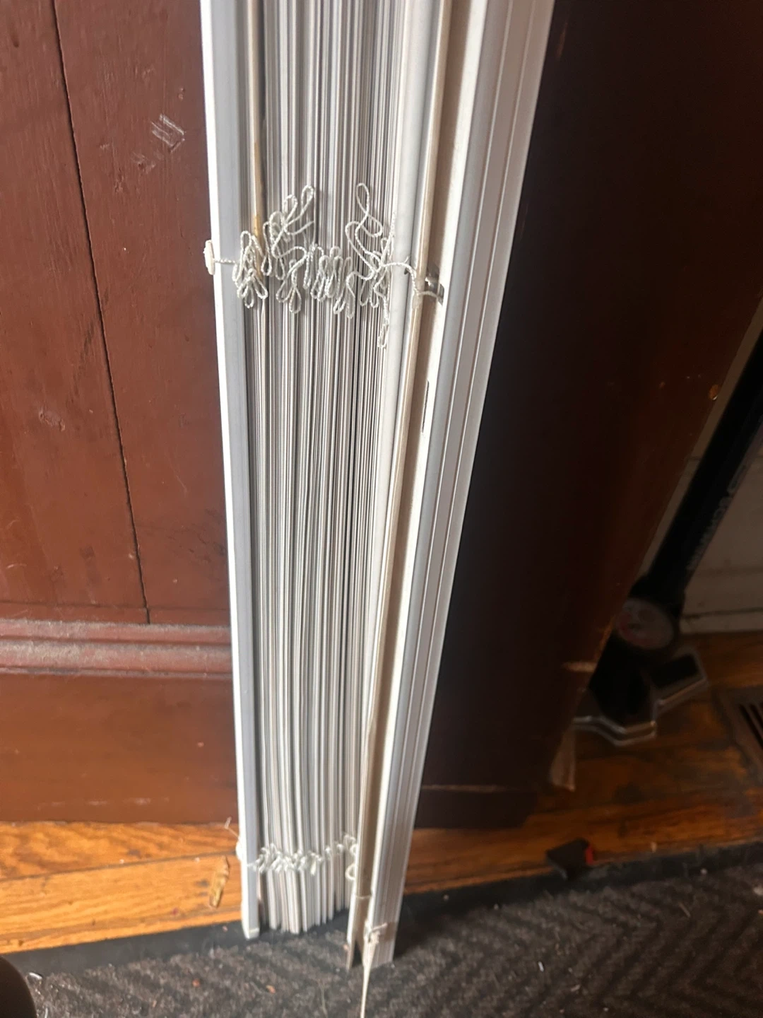 Selling a set of white window blinds. They are in good condition and ready to use. Perfect for adding privacy and light control to any room