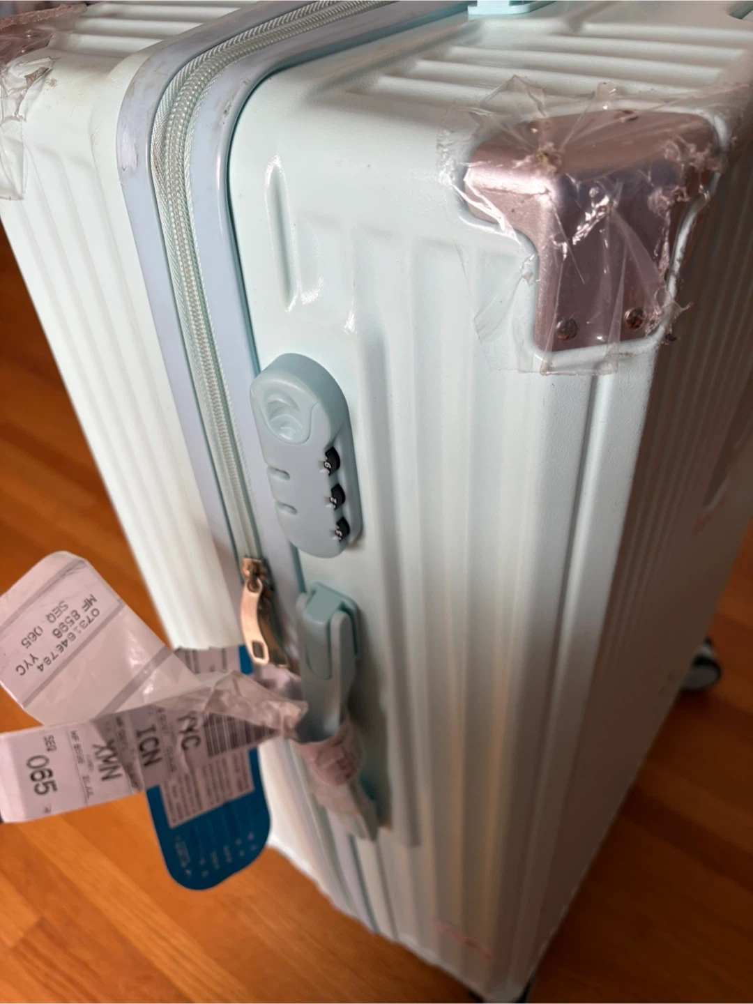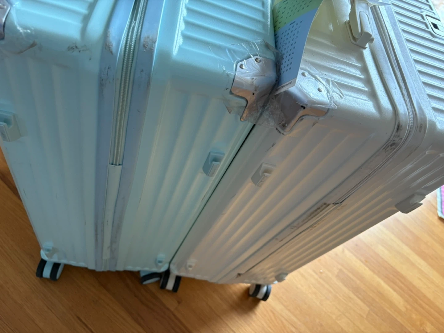 White and light blue Hardshell Suitcase Luggage