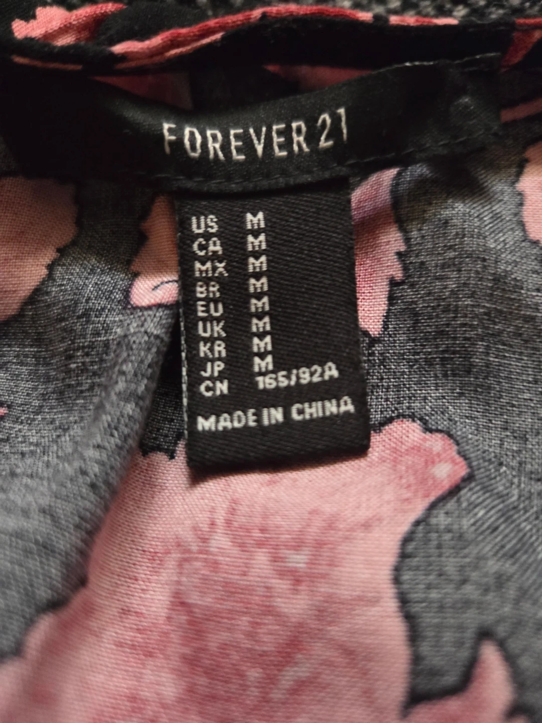 Selling a cute Forever 21 wrap dress in size medium! It features a lovely floral pattern on a black background. Perfect for a casual day out or a summer evening. It's in great condition and ready for a new home