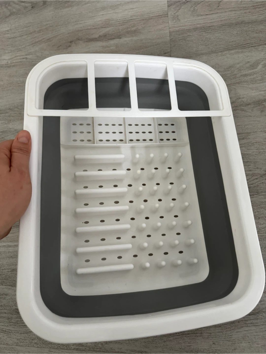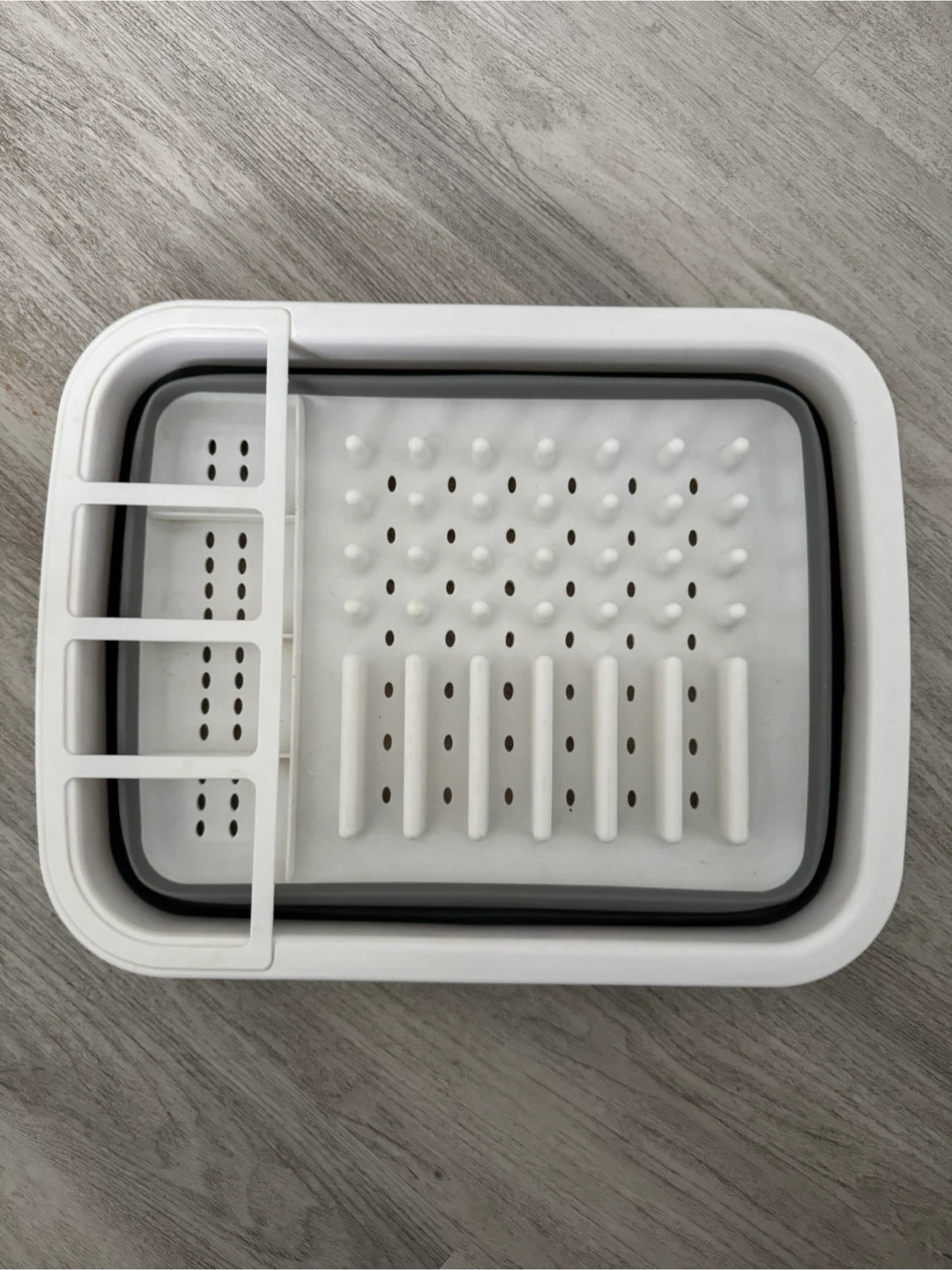 Selling a handy collapsible dish drying rack. It's in great shape and perfect for saving space in your kitchen. Folds up easily for storage when not in use. Great for small spaces.