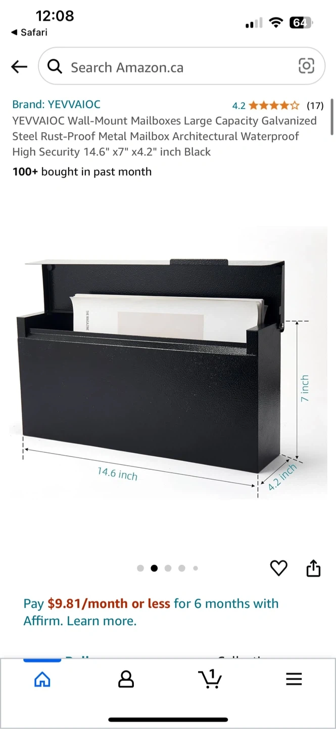 Selling a brand new YEVVAIOC wall-mount mailbox! It's black and still in its original box.