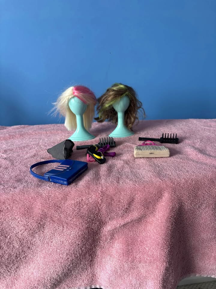 Also included are extra wigs, accessories such as purses, hair brushes and wigs.