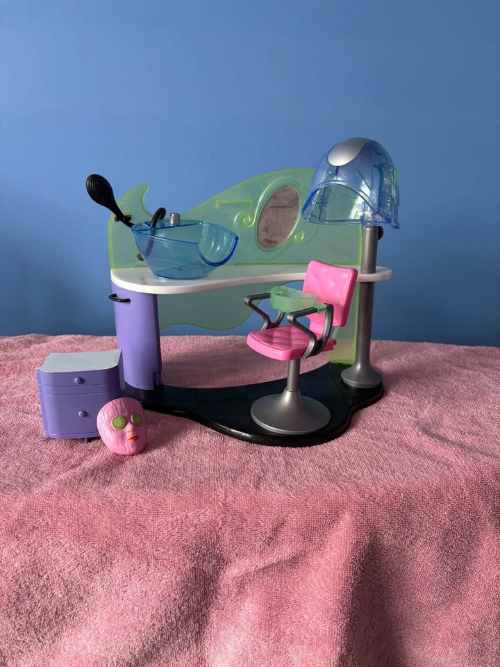 Spa set includes everything pictured and if you use water on the spa sophie, makeup will appear on her face and nail polish on her fingers and toes.