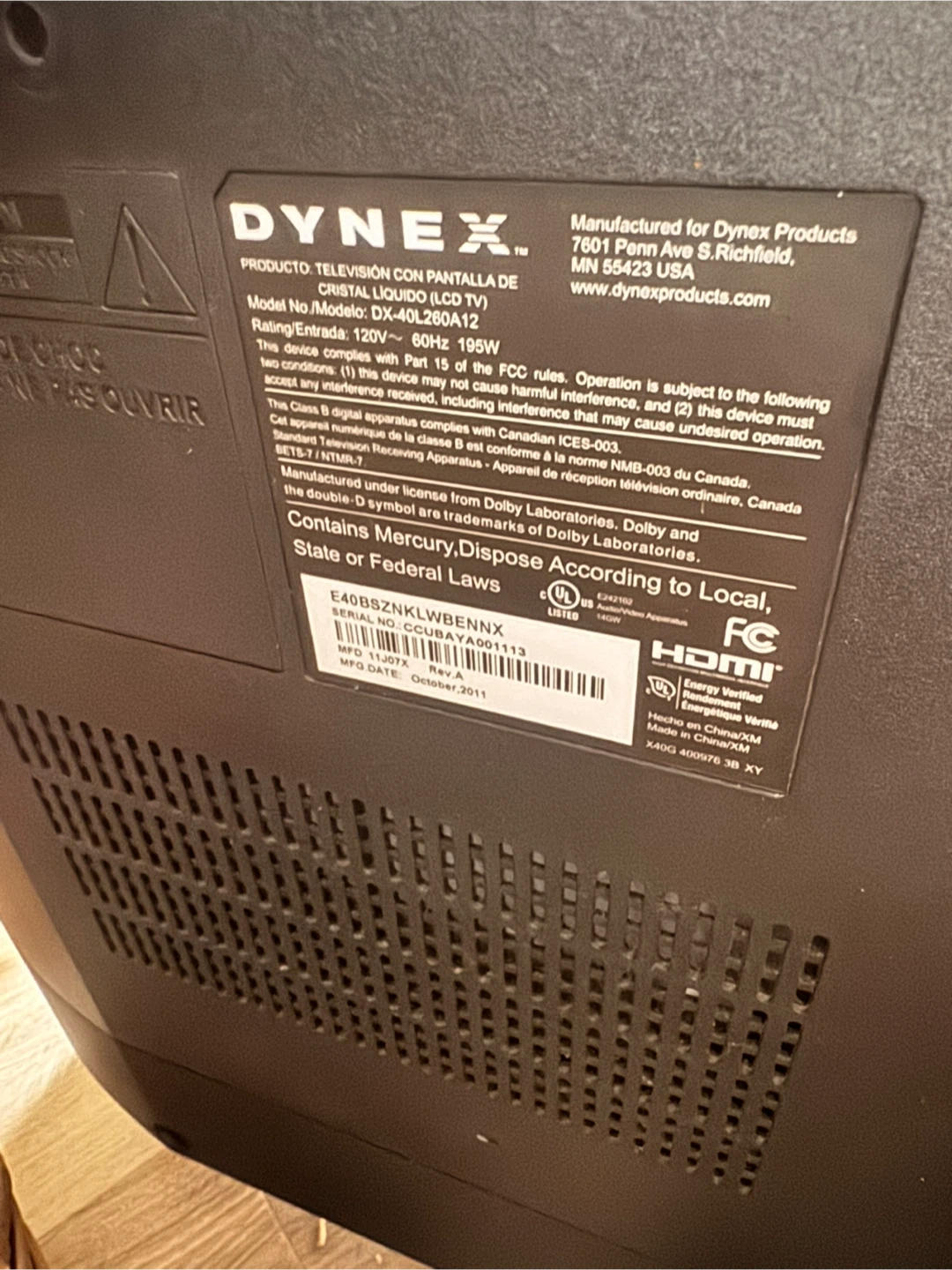 Selling a Dynex 40-inch LCD TV, model DX-40L260A12. It's in good condition just an old model. Can connect with laptop or computer with HDMI cable. Works with firestick as well. Selling because we got a new one. Pick up in Langley near costco !