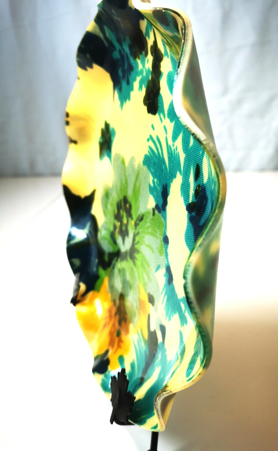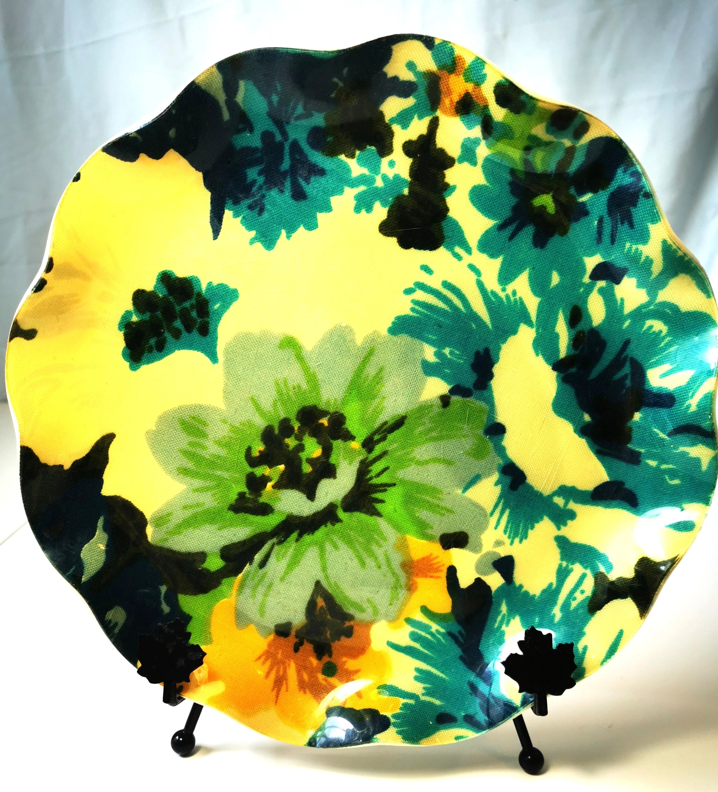 Plate 1960s Floral Fabric & Resin Tray includes Plate Stand