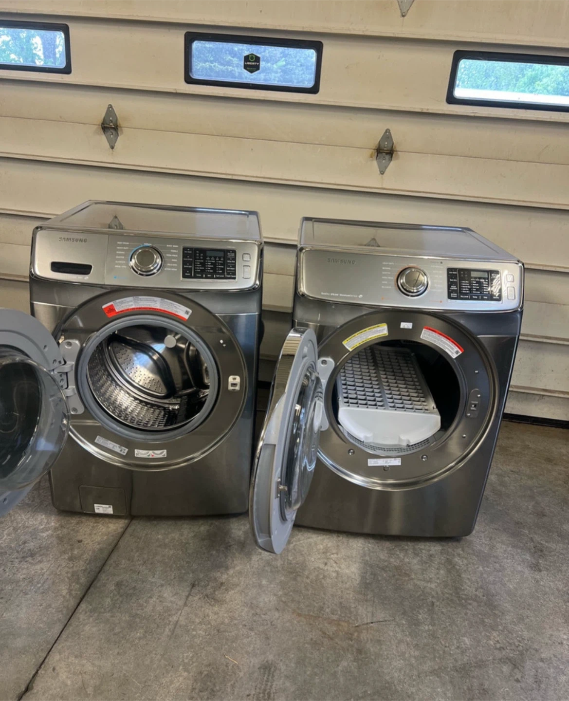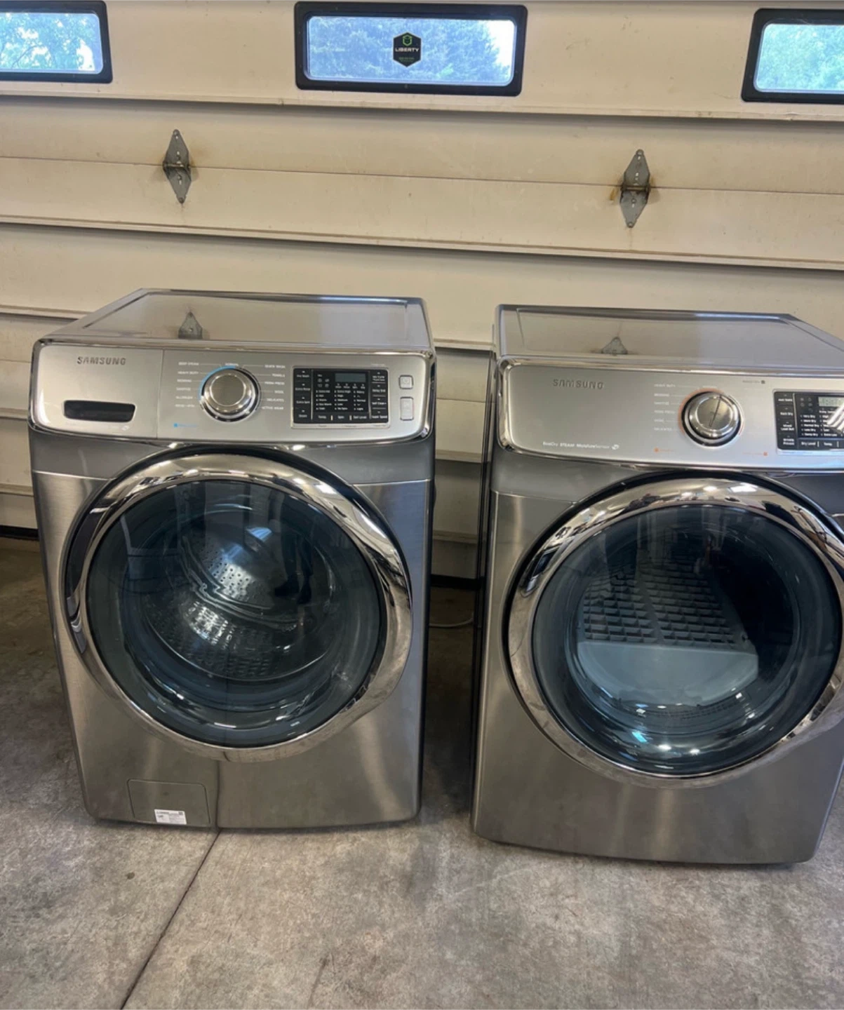 Selling a Samsung front load washer and dryer in silver. It's in great working condition and ready for a new home. 27x27x38 wide bought a wash tower 🤷♂️