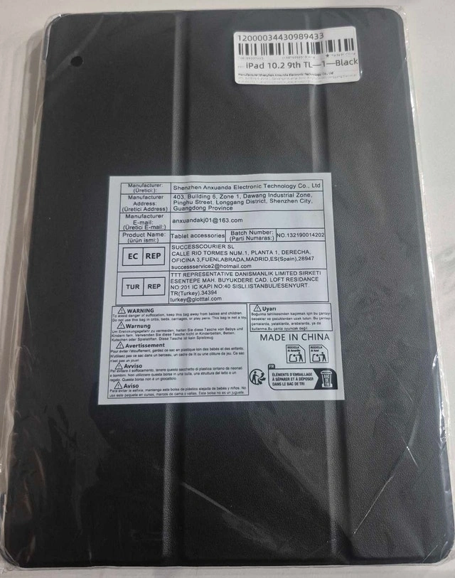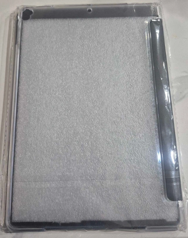 This black tablet case is designed specifically for the iPad 10.2 inch 9th generation, offering a sleek and functional way to protect your device. This item is new, still sealed in its original packaging, ensuring pristine condition and includes a pen holder.