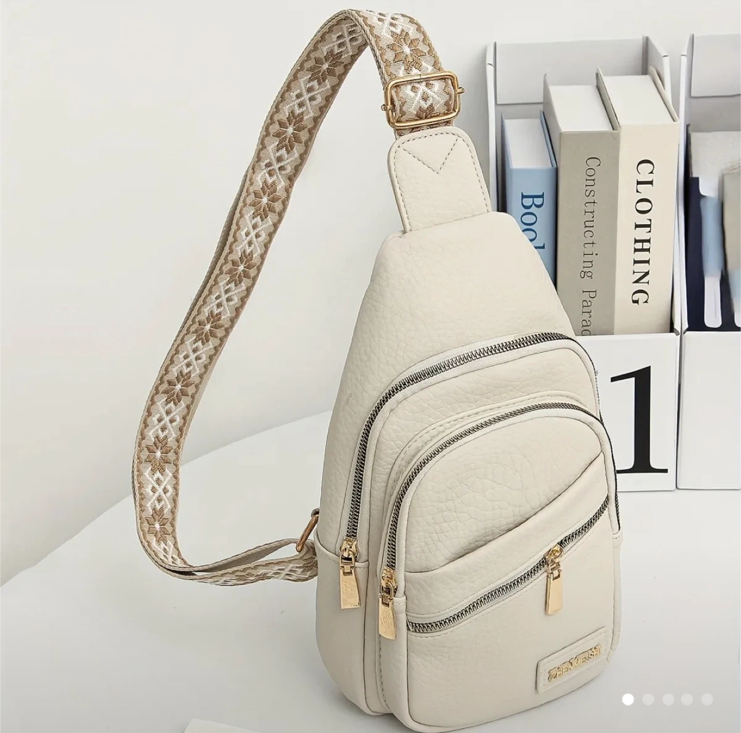 Retro Chest Bag , Zipper Crossbody Bag with Adjustable Strap, Multi-Pocket Design, Classic Texture, Safety Zipper Closure, Casual & Sports Style, Casual Accessory | Retro Style Bag | Durable Zipper Closure, Crossbody Bag