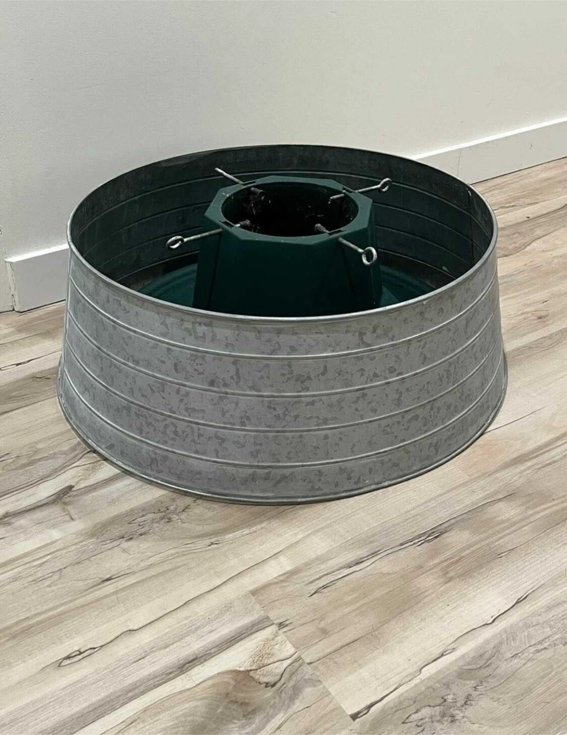 Tree stand dimensions: 21” bottom diameter x 7” opening for trunk x 10” tall.