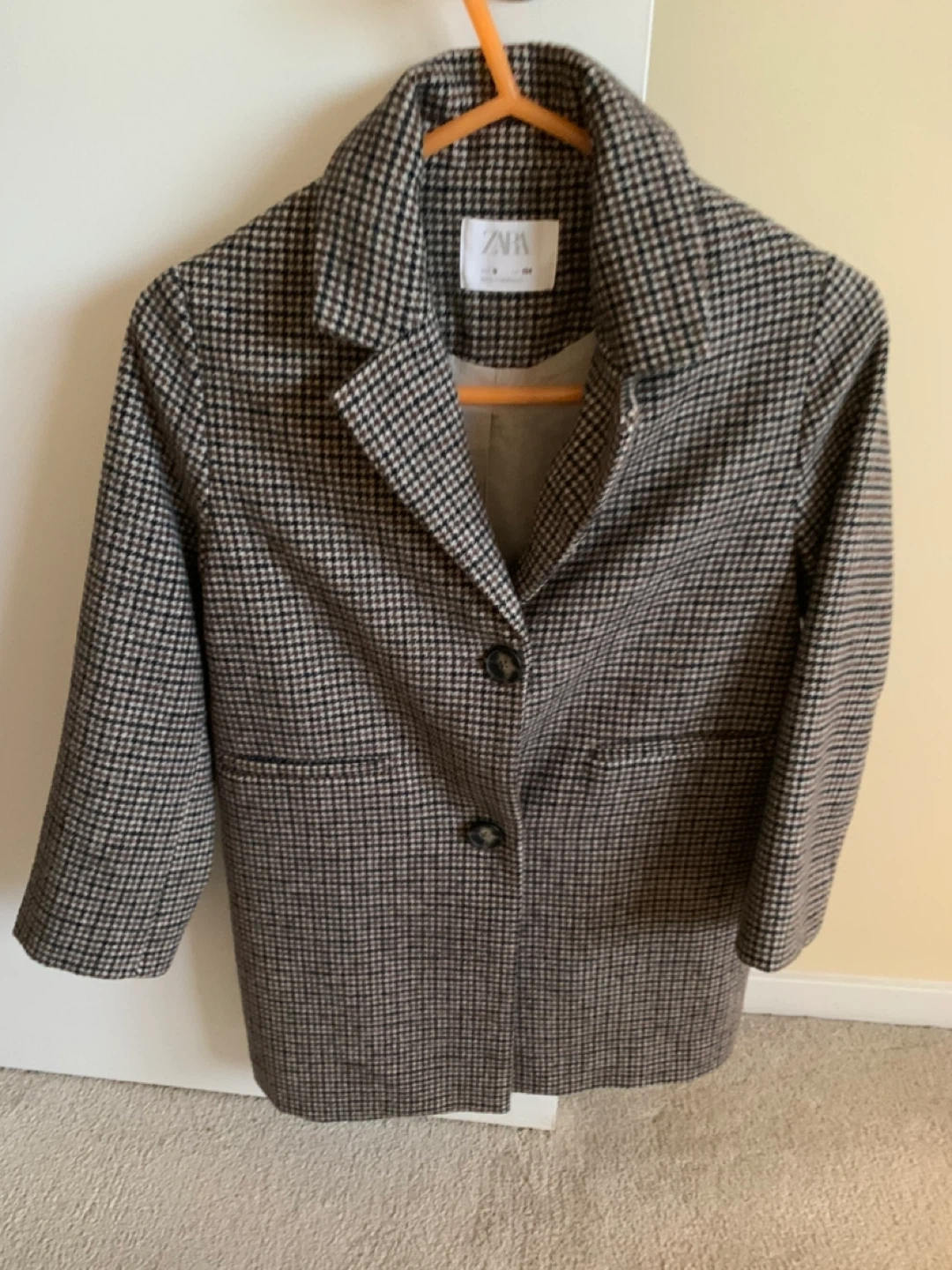 Selling a Zara kids houndstooth coat in size 9 (134 cm). It's in great condition and perfect for keeping your little one warm and stylish!