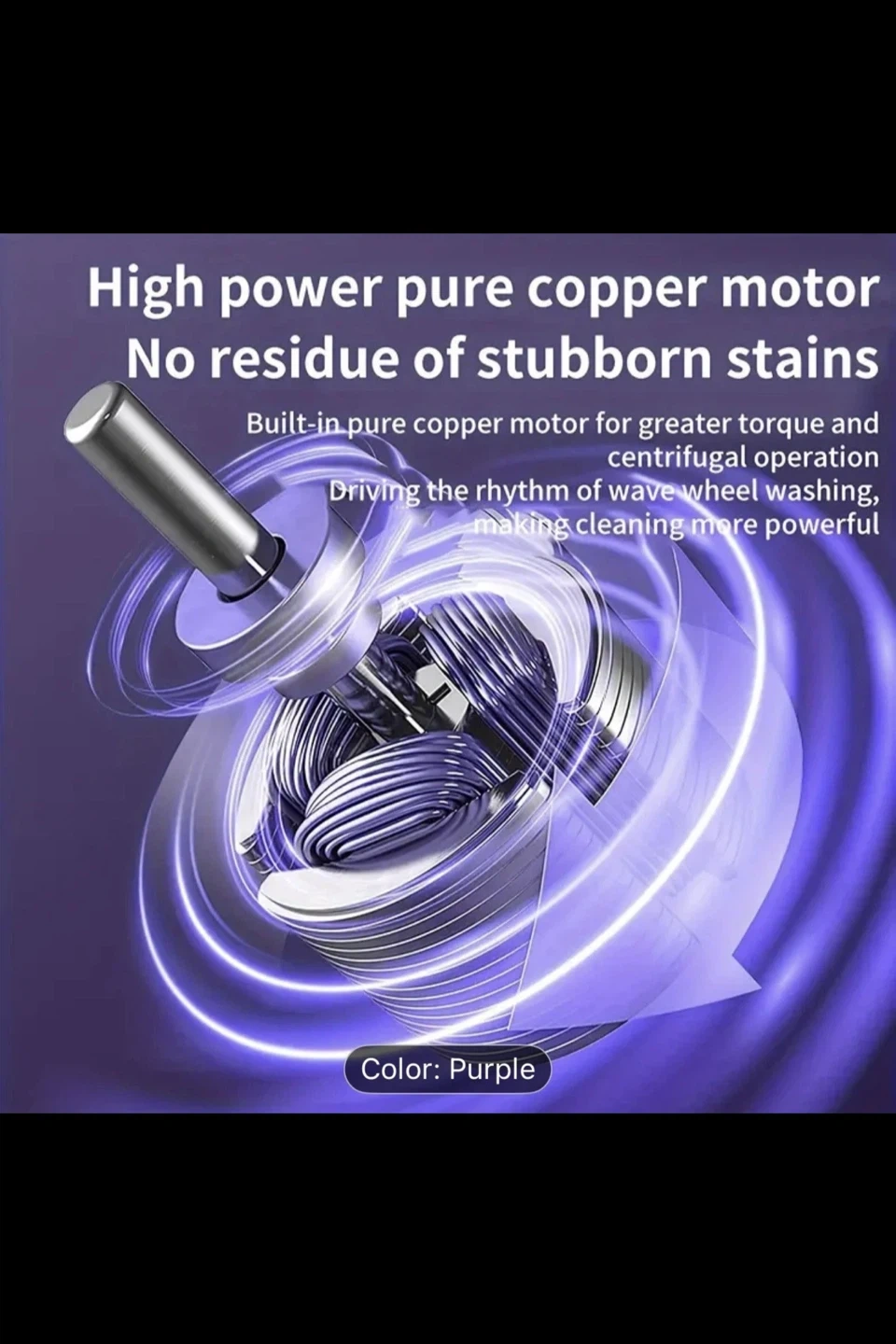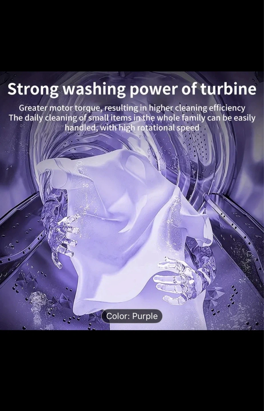 This folding mini washing machine is perfect for infants and young children! It's designed for strong decontamination, classified washing, protection, and deep cleansing. It also features mute noise reduction. The color is purple. Dimensions are approximately 30cm/11.8in x 30cm/11.8in x 13cm/5.1in when folded.