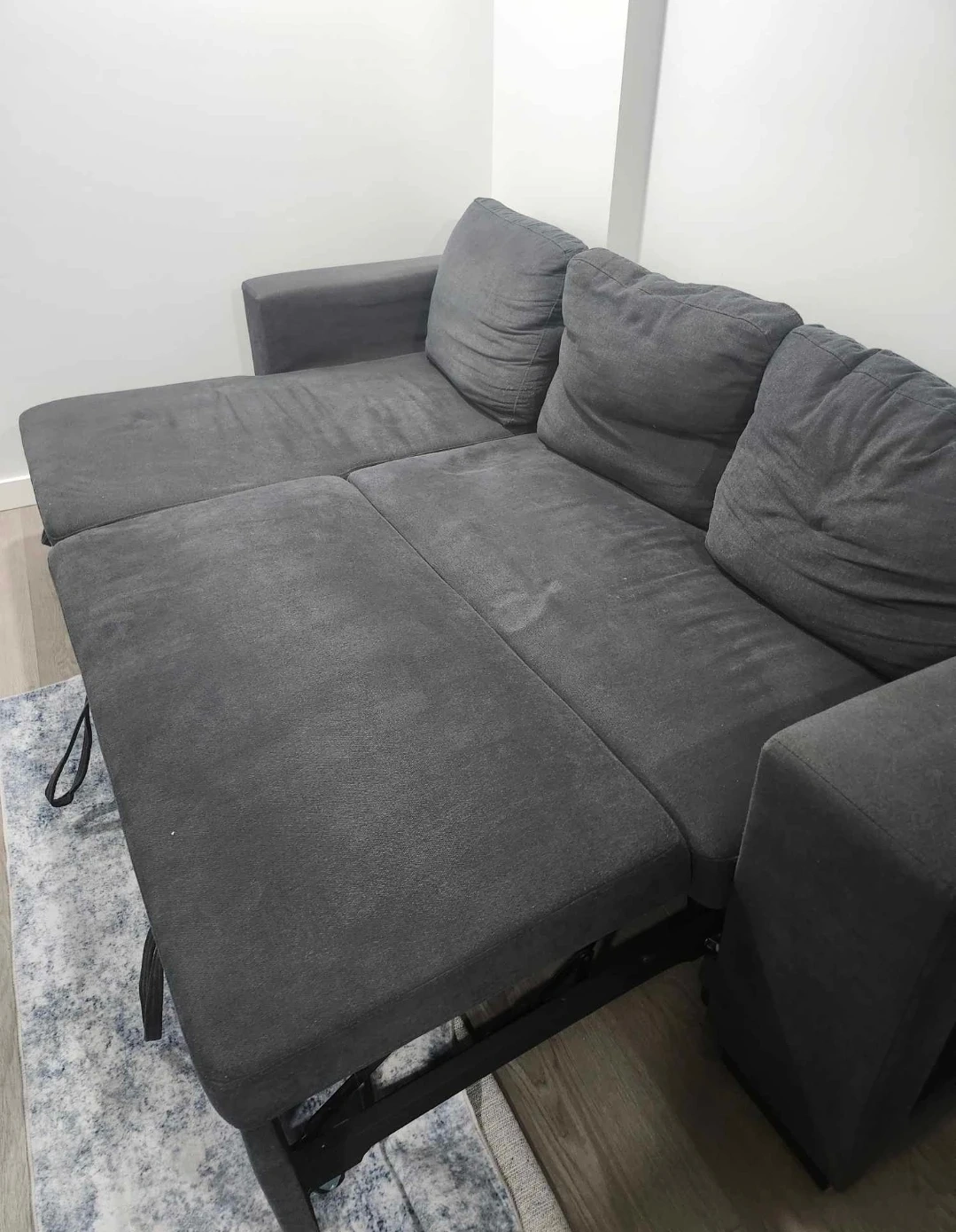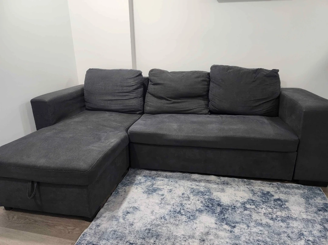 Selling a comfy grey sectional sofa with a chaise lounge! It's in good condition and would be a great addition to any living room