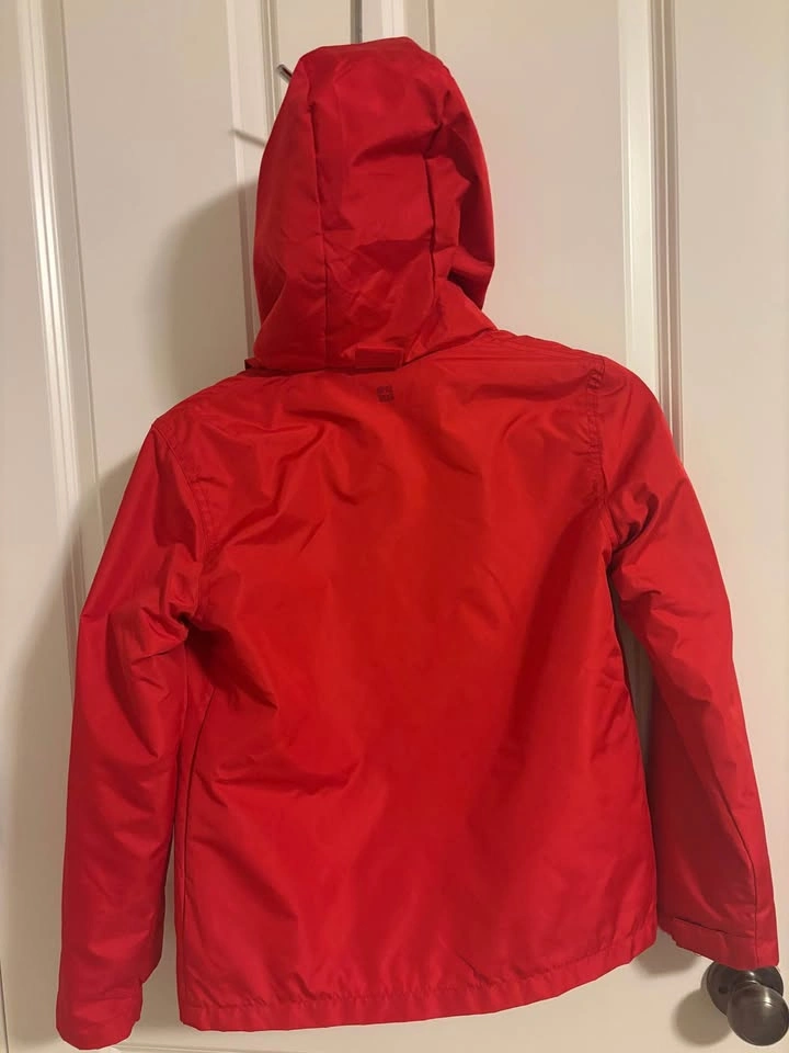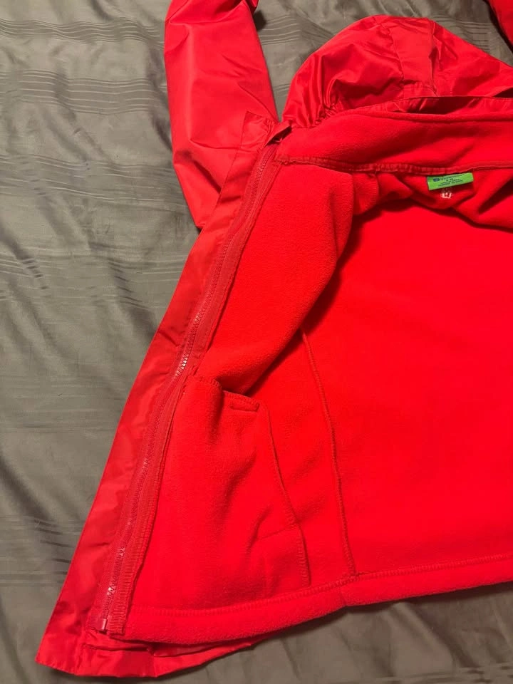 This is a great jacket because it has both a windbreaker and a fleece, which can be worn together or separately. The hood is also removable.