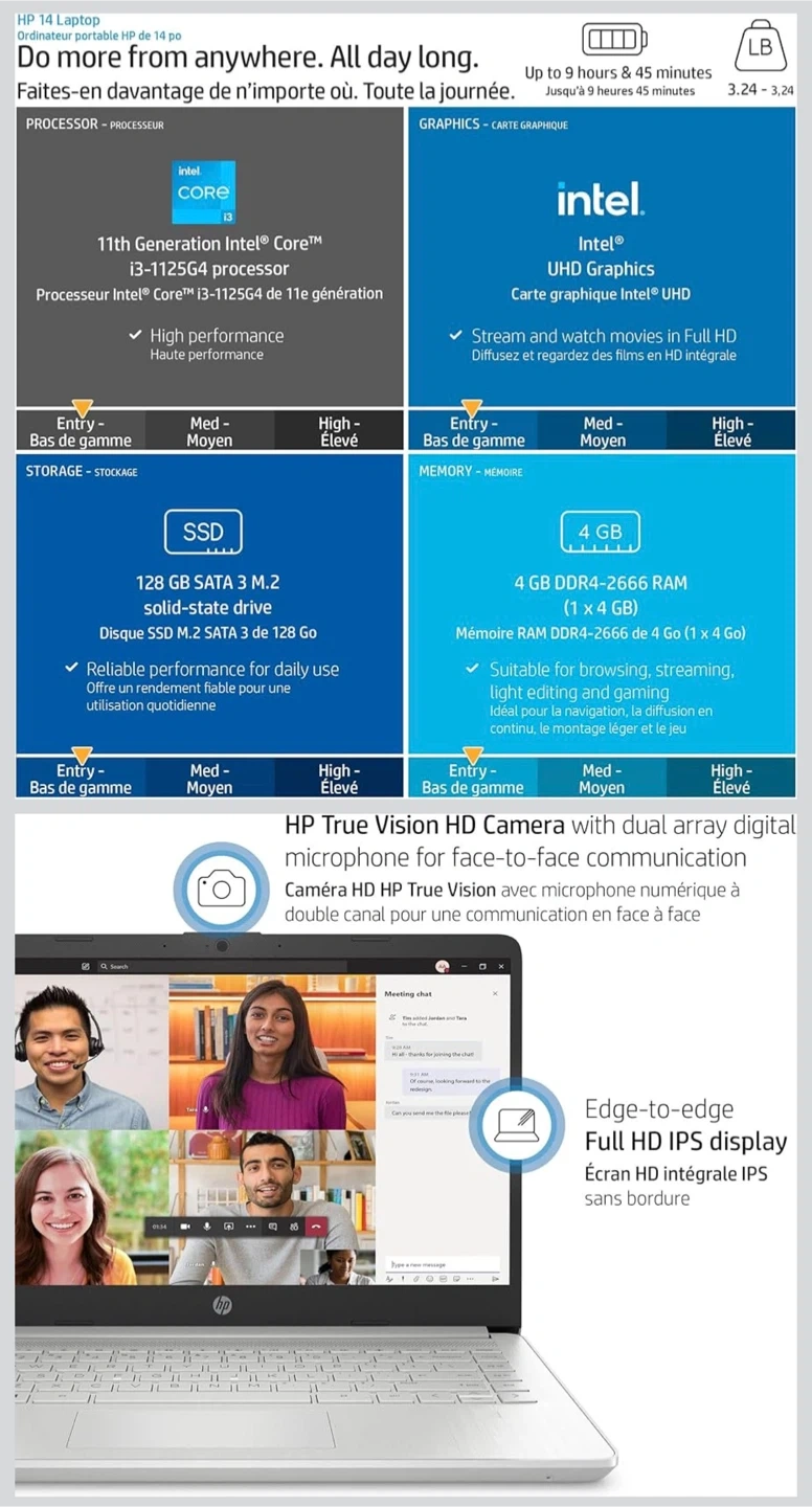 - 14-inch FHD (1920 x 1080) IPS micro-edge display
