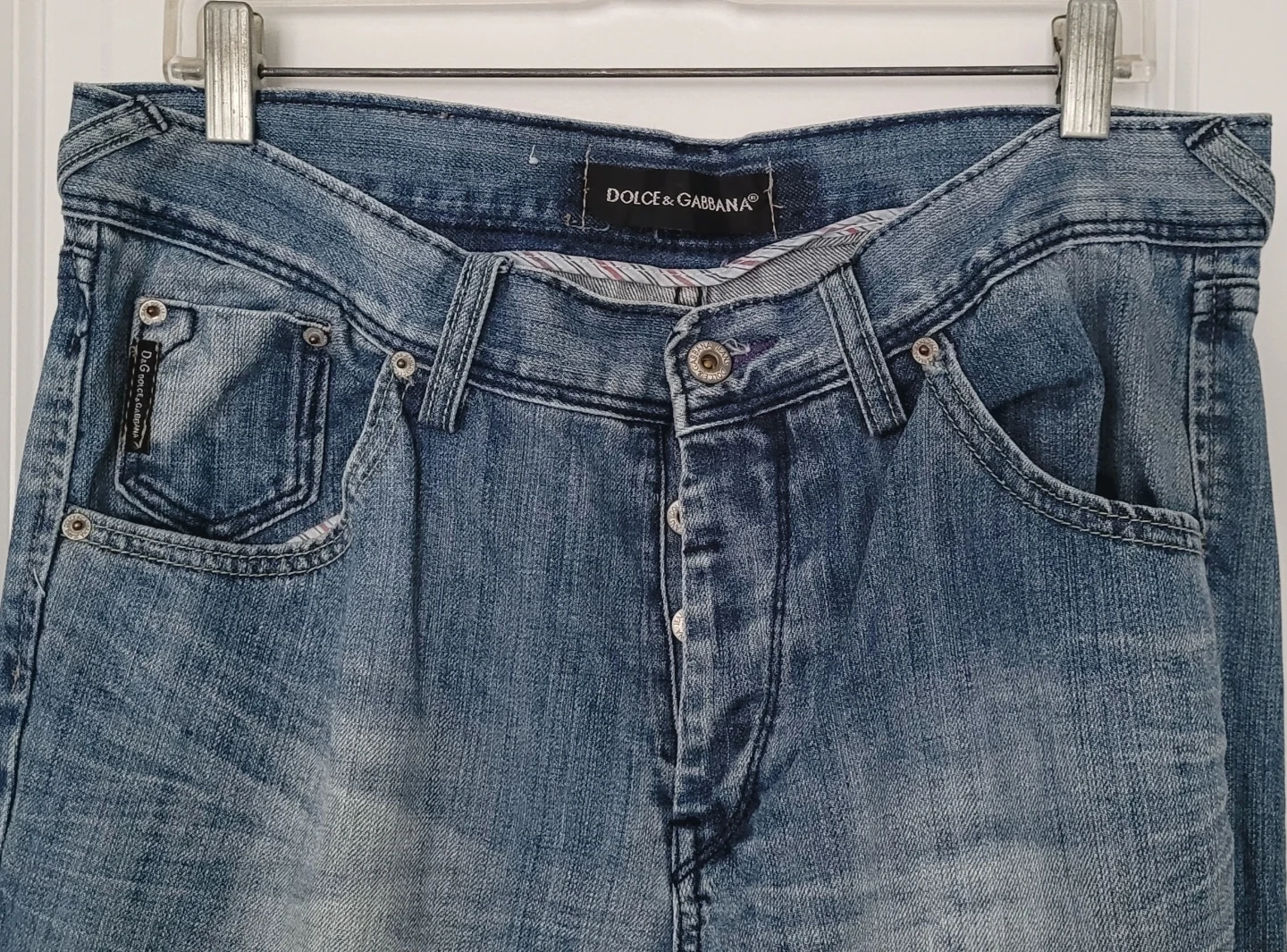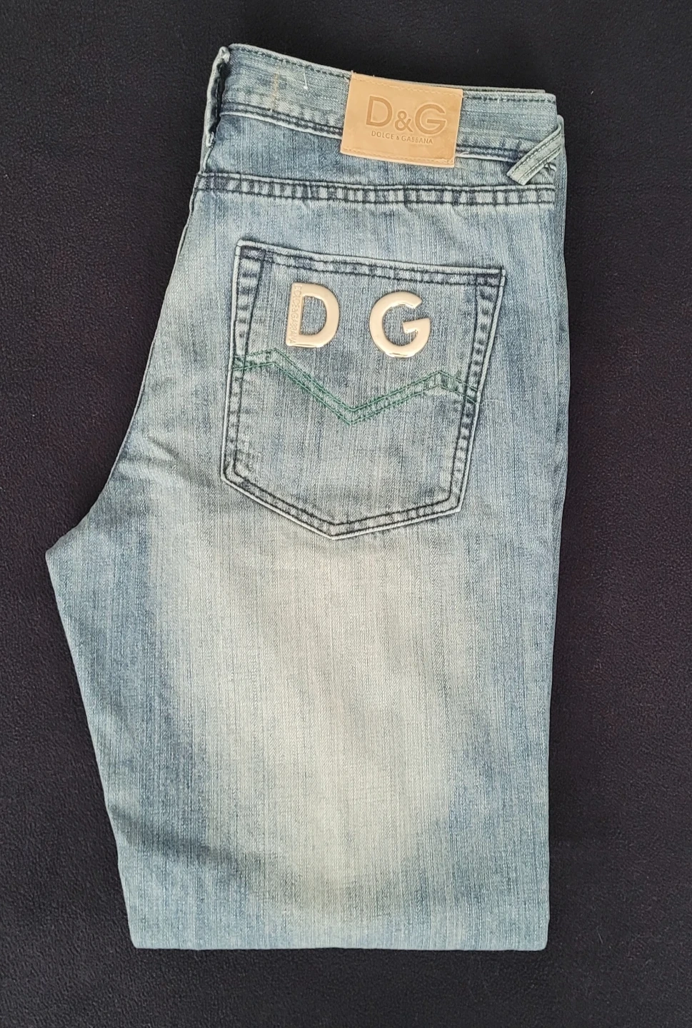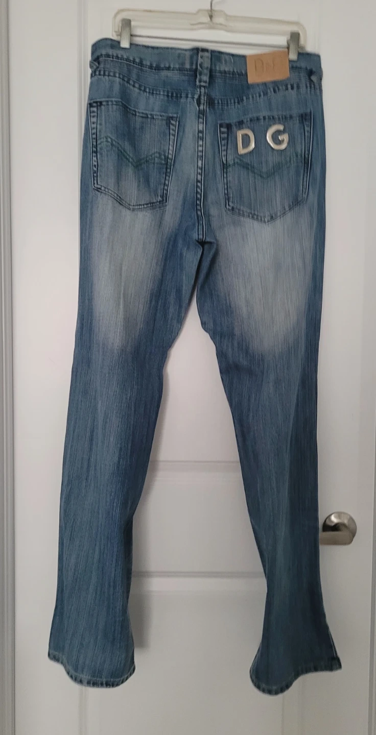 Selling a pair of man's Dolce & Gabbana jeans. They feature the D&G logo on the back pocket and a leather patch on the waistband. The jeans are in new-like condition and have a classic denim wash. Perfect for adding a touch of designer style to your wardrobe!