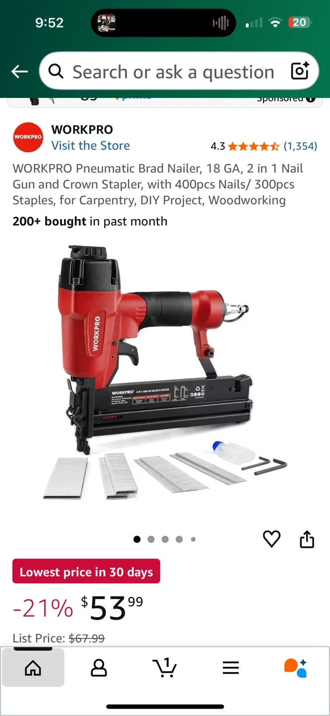 Buy & SellWORKPRO 18GA 2-in-1 Pneumatic Brad Nailer & StaplerWORKPRO 18GA 2-in-1 Pneumatic Brad Nailer & Stapler$36Selling a WORKPRO 18GA 2-in-1 pneumatic brad nailer and stapler. It's in great condition and comes with the box! https://a.co/d/3a7ycNh0 chats·0 favorites·14 viewsSELLERTomDoncrest827 reviewsWHERE TO MEETCheck Location