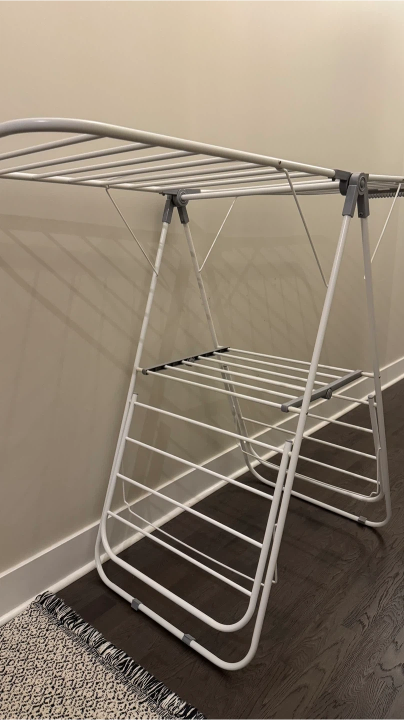 A good size clothes drying rack. Folds for easy storage when not in use. It’s also multi-functional as it can be used halfway open too if the whole thing isn’t needed.