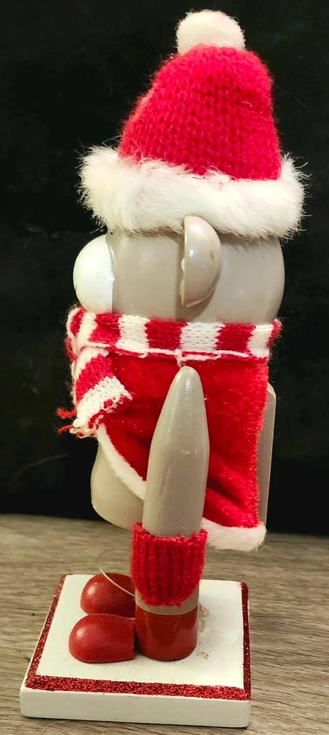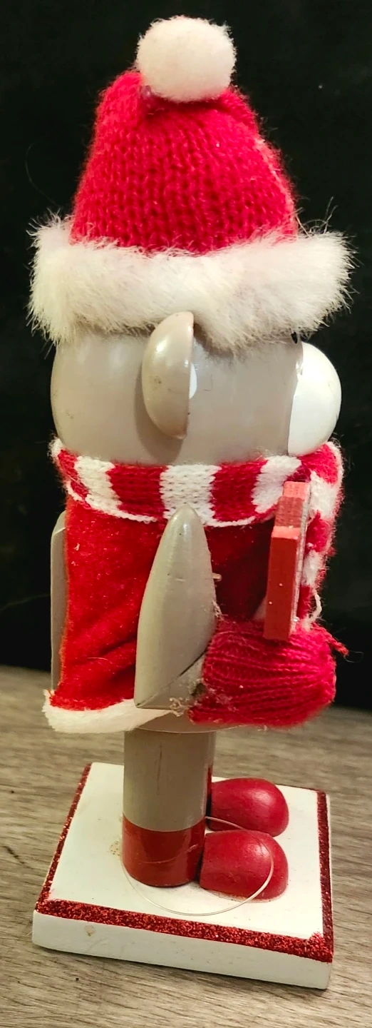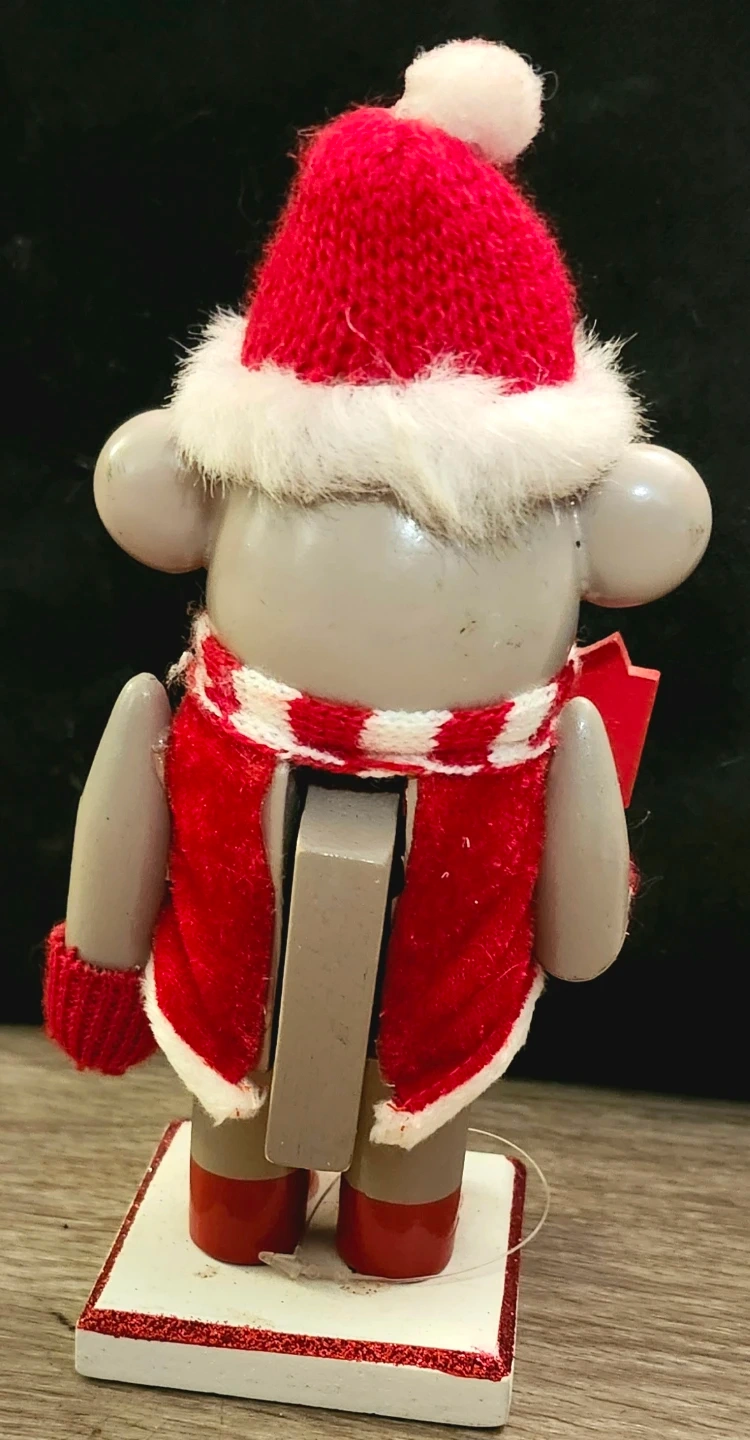 Spruce up your holiday decor with this charming Christmas nutcracker, showcasing a delightful monkey design decked out in a festive red and white ensemble. It's in used condition but adds a whimsical touch to any seasonal display.