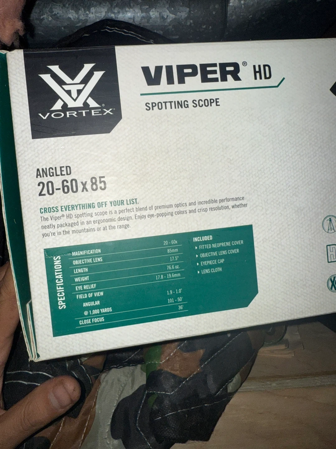 Brand new Vortex Viper HD 20-60x85 Angled Spotting Scope