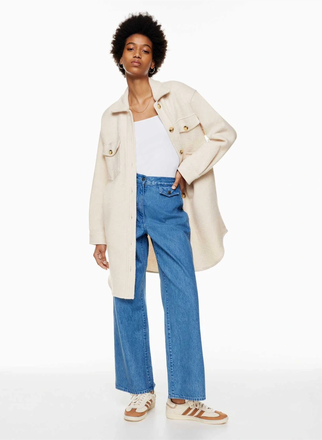 Keep your jacket on. Inside, outside — everywhere. A Wilfred Free classic beloved for its relaxed silhouette and all-season versatility, The Ganna™ delivers the relaxed silhouette of a shirt with the warmth of a jacket, transcending the typical rules of indoor/outdoor style. It's crafted with dropped shoulders, patch pockets and a rounded hem for throw-over-anything ease. This version has a longer inseam and is expertly tailored with boiled merino wool that's plush, dense and textural.