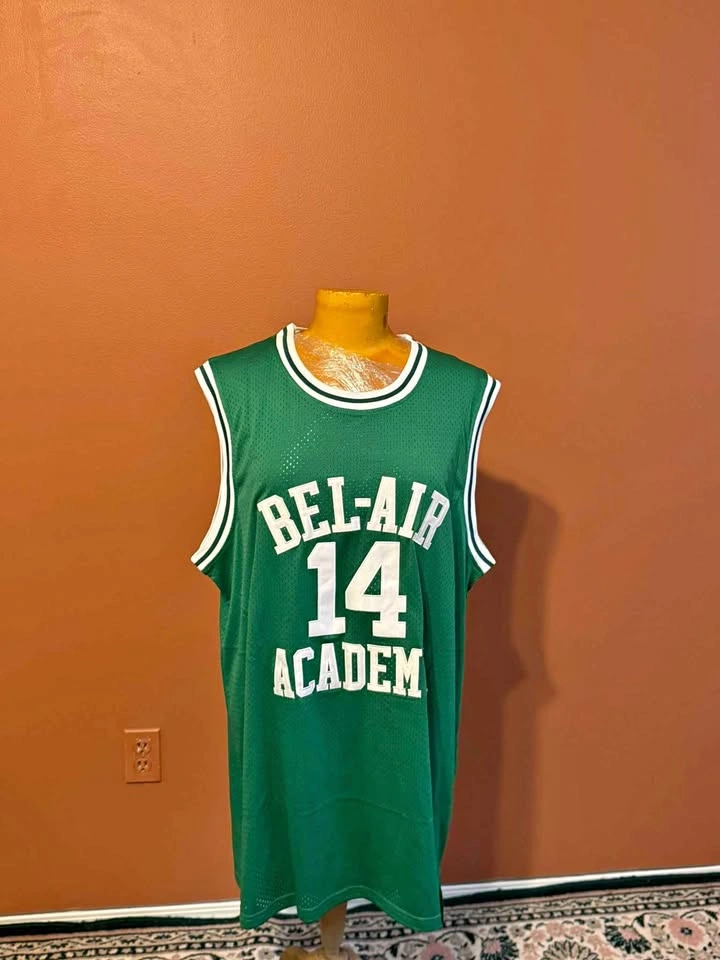 Brand new Bel-Air Academy #14 (Smith) basketball jersey in green. Lightweight breathable mesh, comfortable fit, perfect for sports, casual wear, or fans of the classic show.