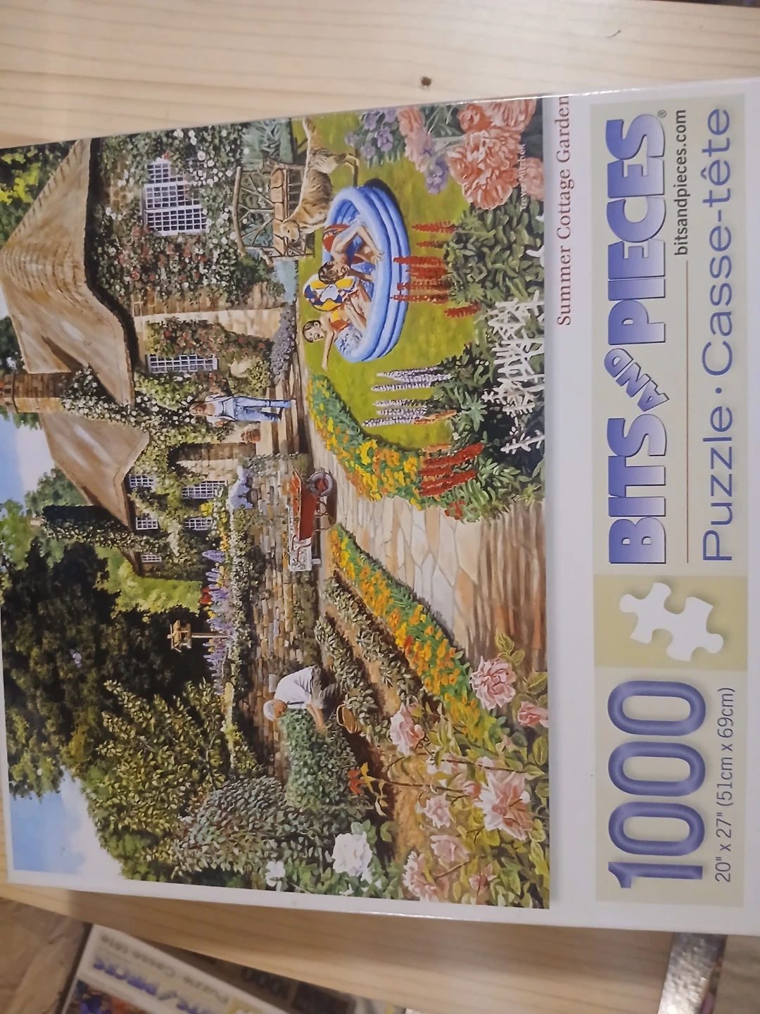 Looking to sell a Bits and Pieces 1000-piece puzzle, titled "Summer Cottage Garden"! The puzzle's dimensions are 20" x 27" (51cm x 69cm). In great condition!