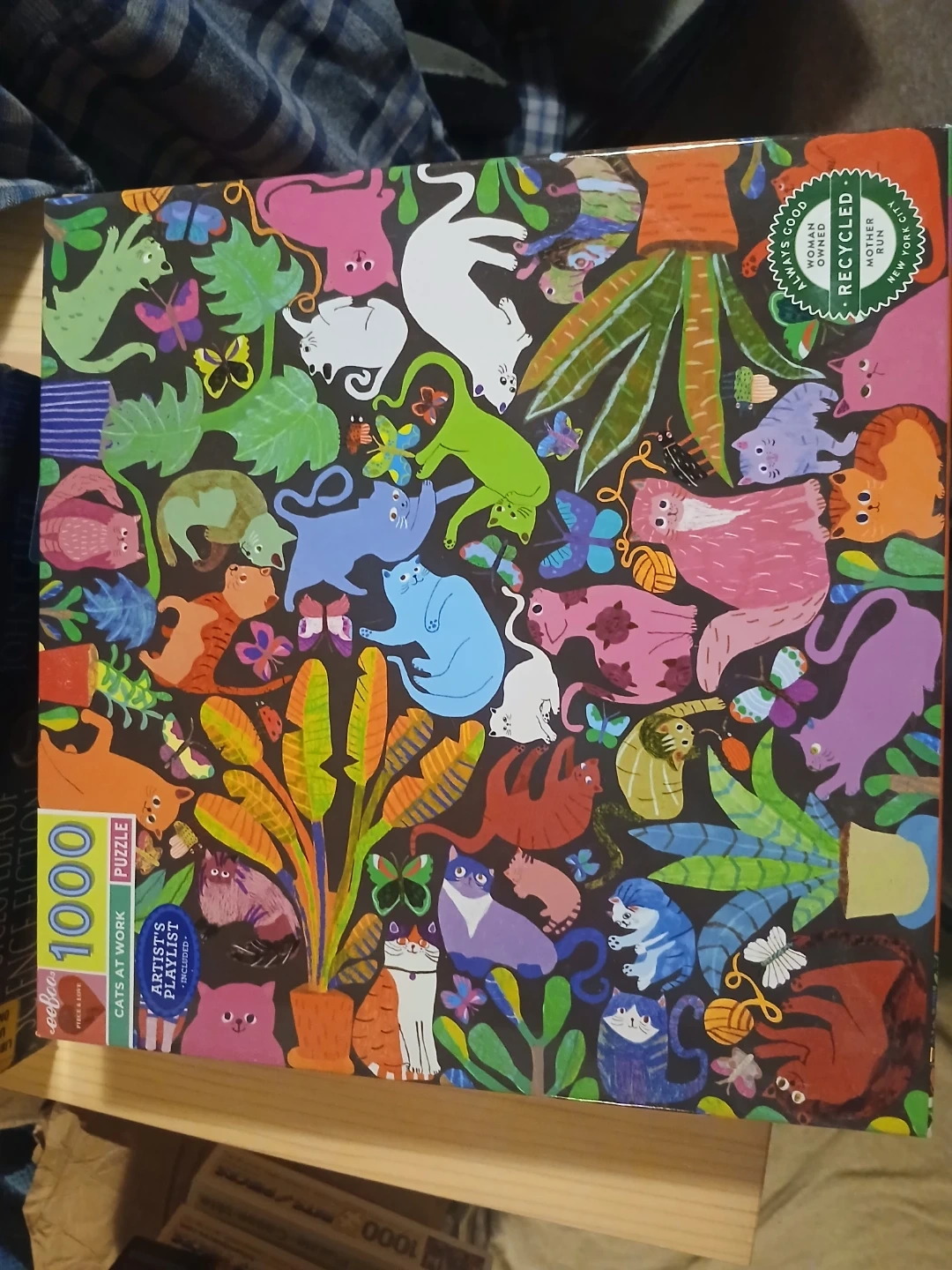 Looking to sell a 1000-piece puzzle from Eeboo called Cats at Work! It's a colourful and fun puzzle with dimensions of 23 x 23 inches (58.4 x 58.4 cm). In great condition!