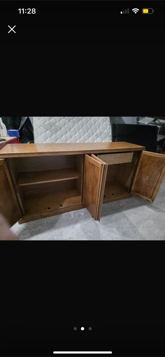 Selling a wooden cabinet featuring doors and drawers! It's perfect for storage and organization in any room. The cabinet has a classic design and is in good condition. It would be a great addition to your home!