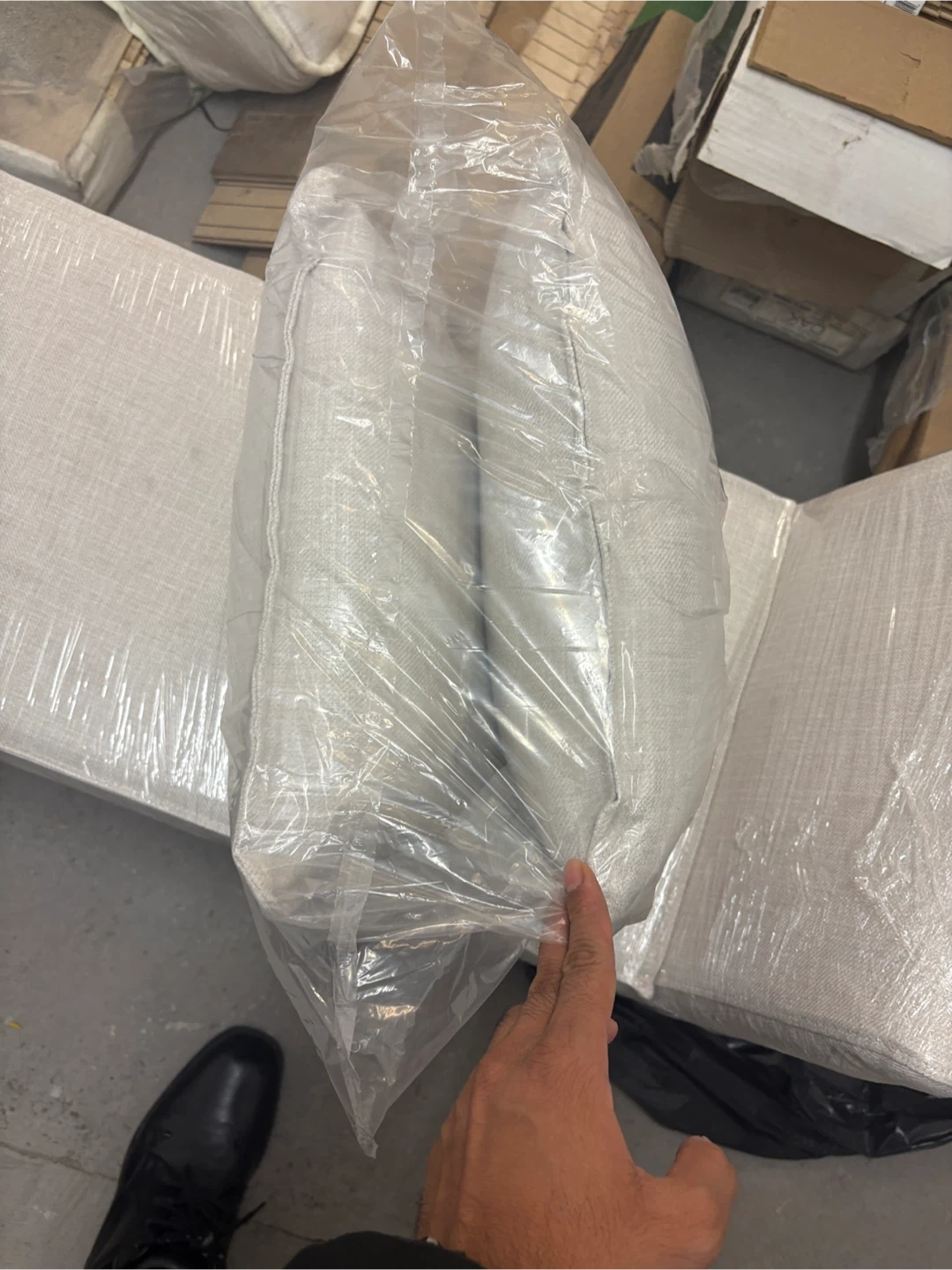 Selling a sectional sofa piece in beige. It's wrapped in plastic and ready to go! With 2 pillows It is in good condition.