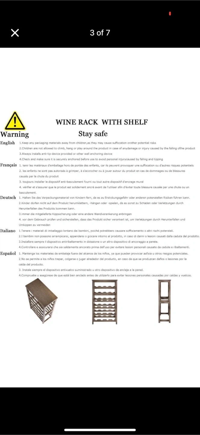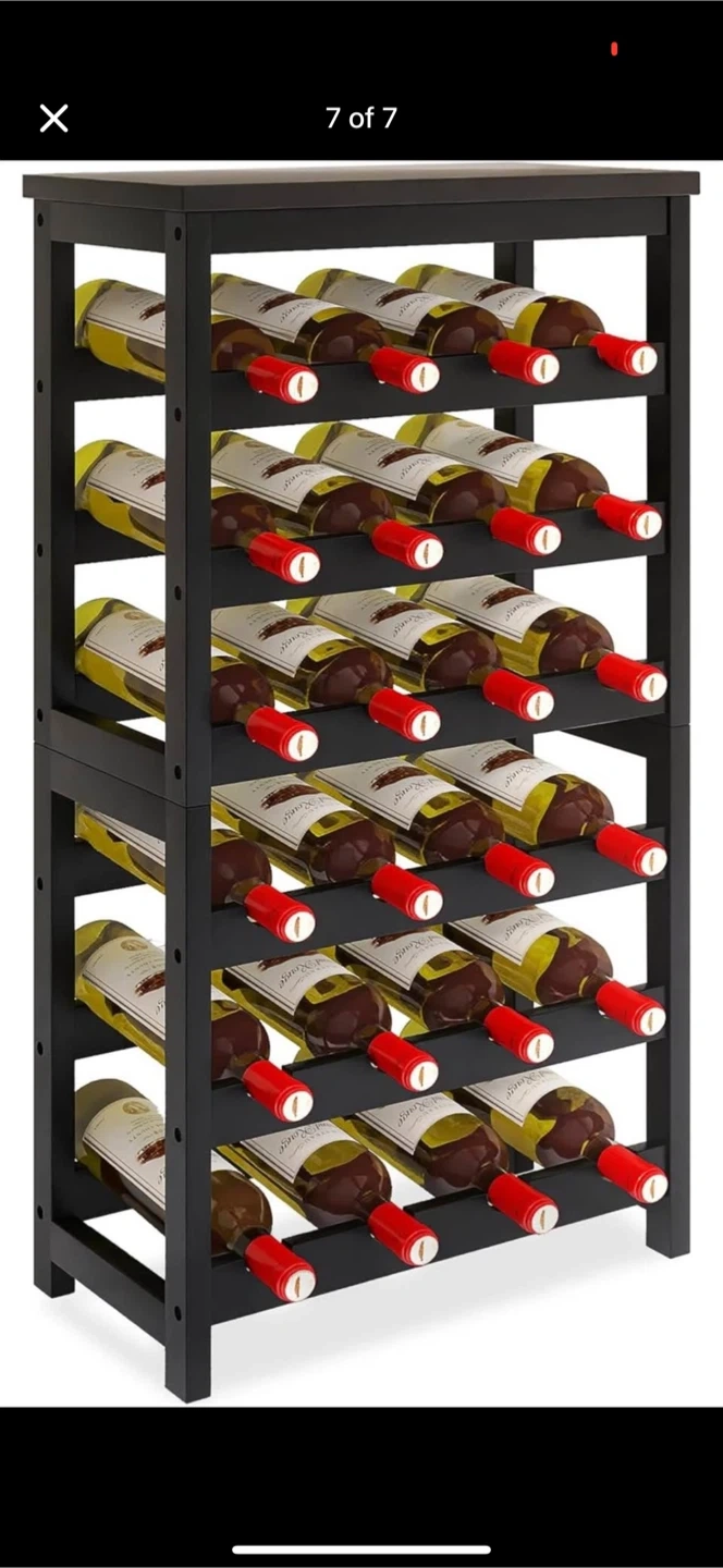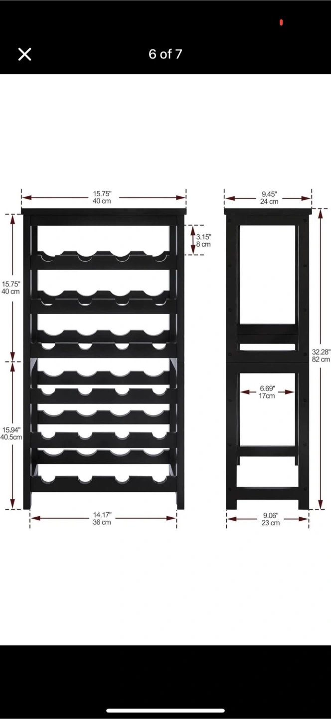 This sturdy and durable wine rack has a large capacity, holding up to 24 bottles. It's designed to securely hold wines and other spirits. It measures approximately 32.28 inches (82 cm) in height, 15.75 inches (40 cm) in width, and 9.45 inches (24 cm) in depth