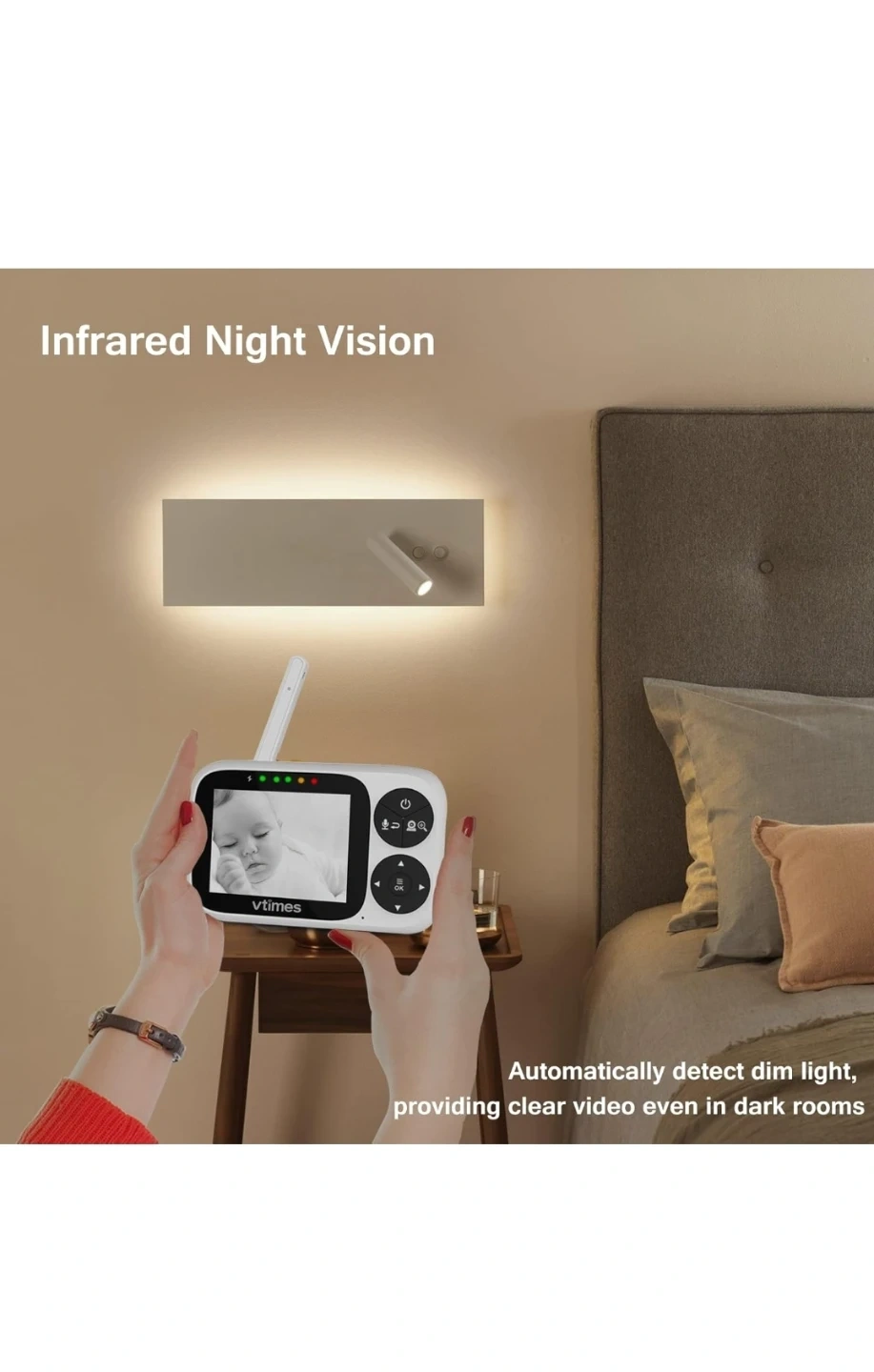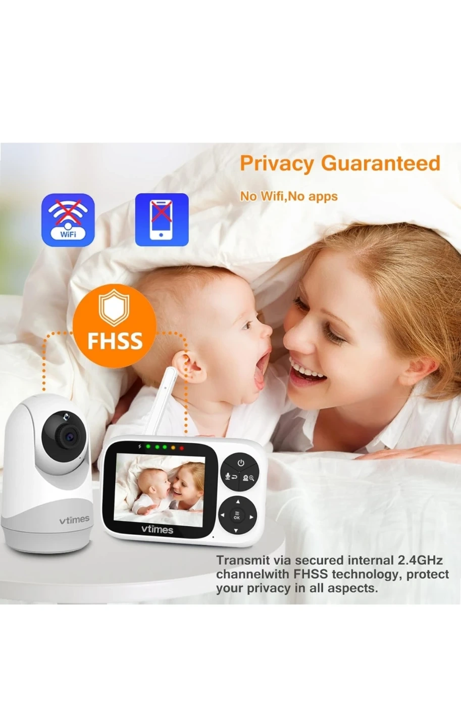 New Video Baby Monitor with 1 Camera, 3.2" IPS Screen Baby Camera Monitor No WiFi Night Vision VOX Mode Pan-Tilt-Zoom Temperature Display 2 Way Audio Lullaby Feeding Alarm and 1000ft Range